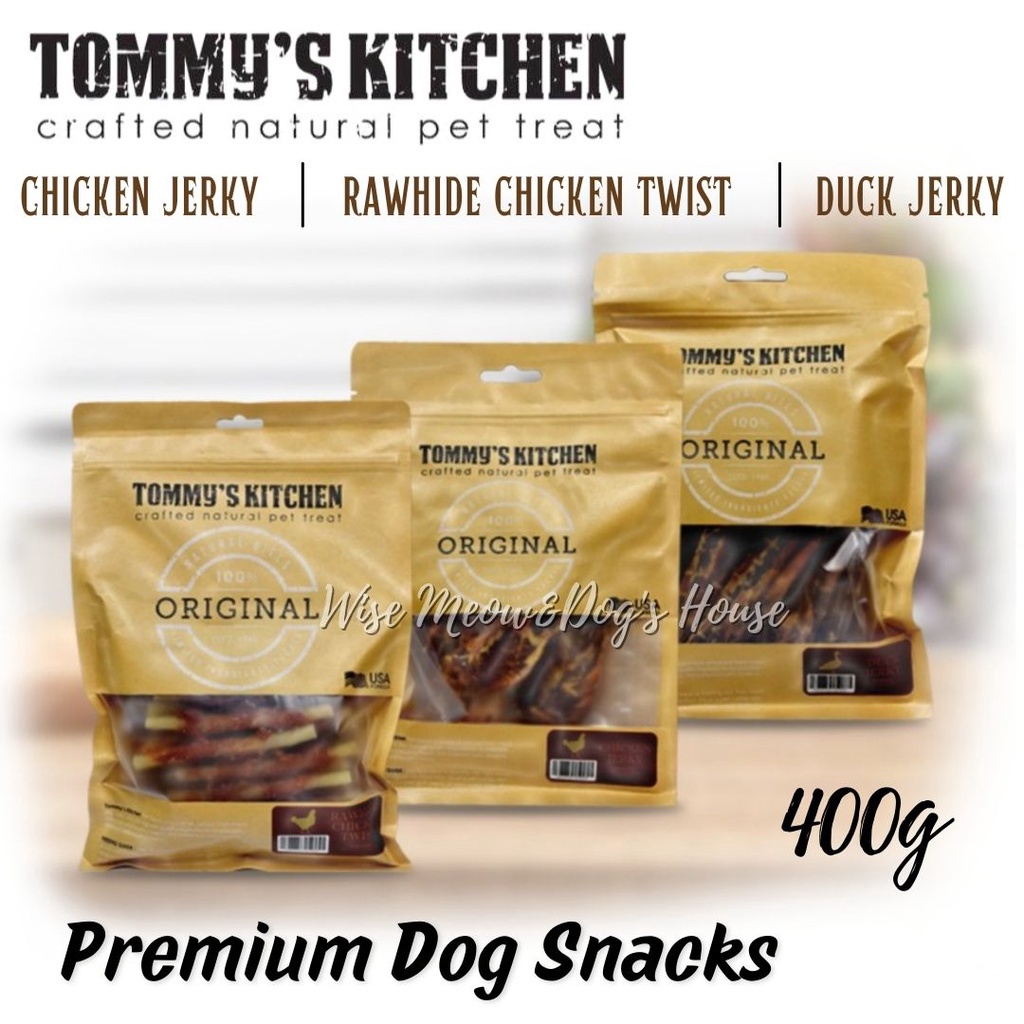Tommy’s Kitchen Premium Snack Food -Dogs 400g (Chicken Jerky ,Duck Jerky, Chicken w/Rawhide, Chicken Chips)