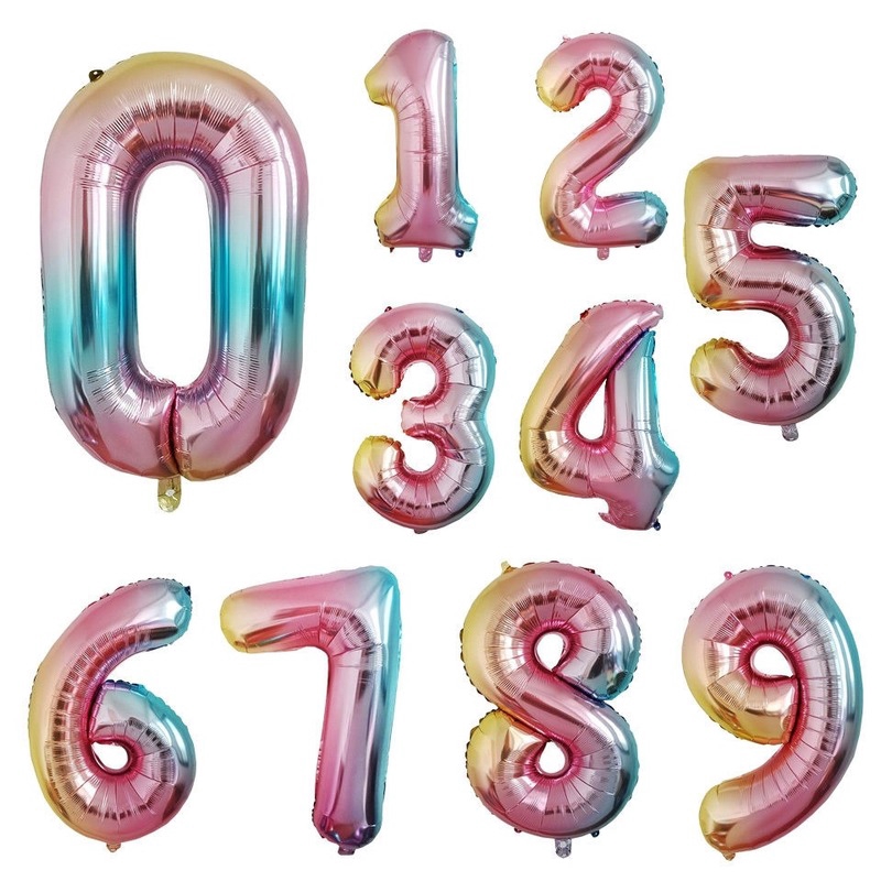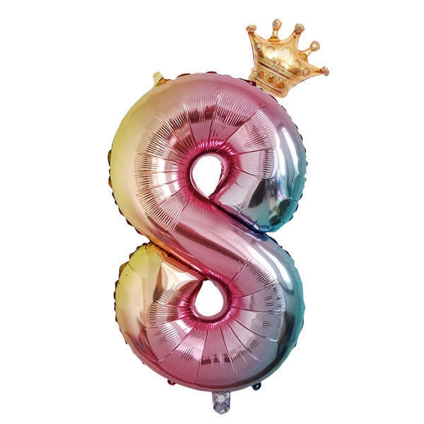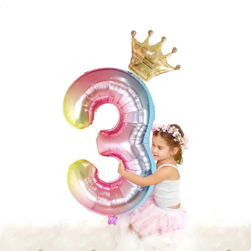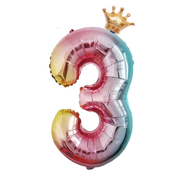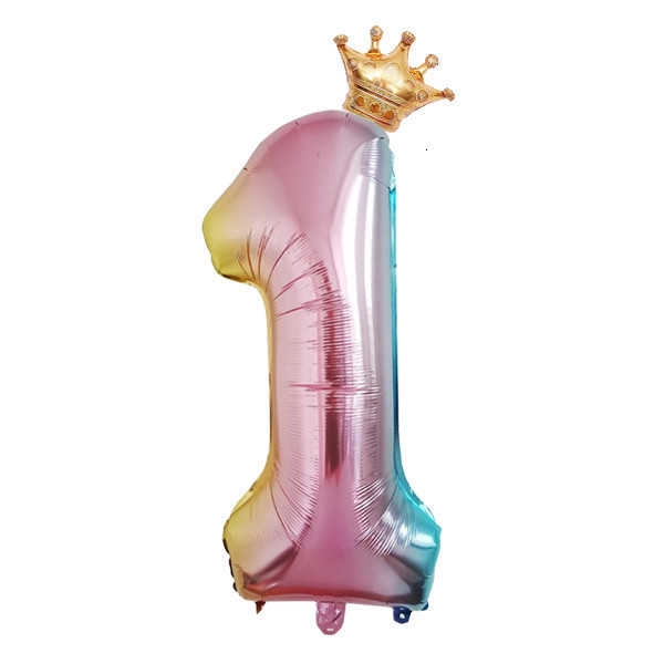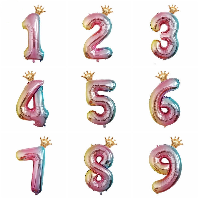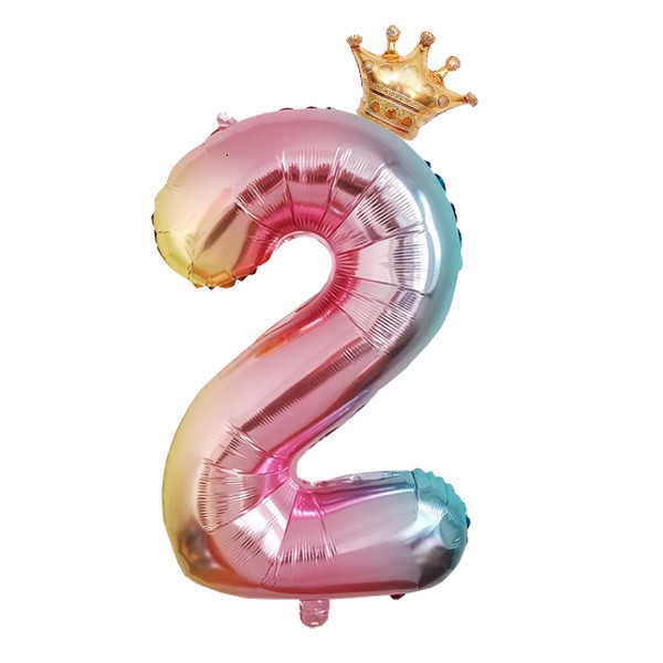 2pcs/set 32 inch Rainbow number crown foil Balloon helium Gradient Happy Birthday wedding party Baby Shower