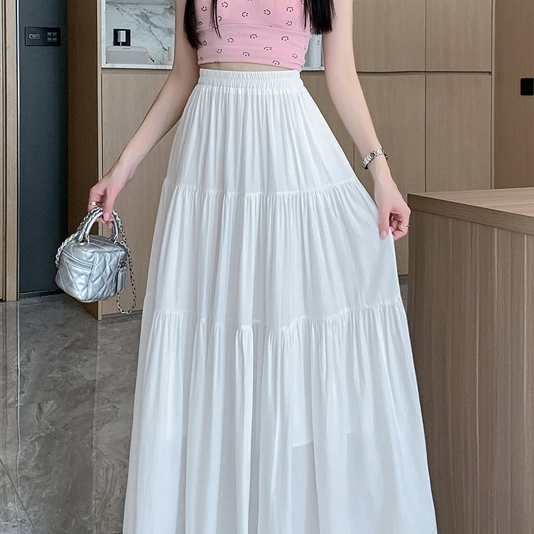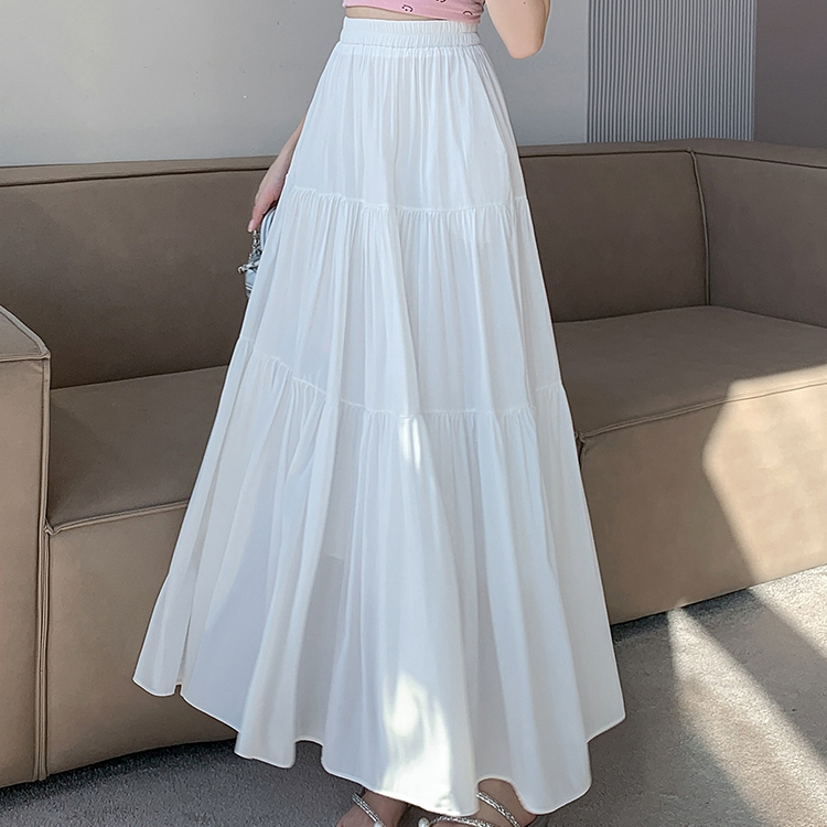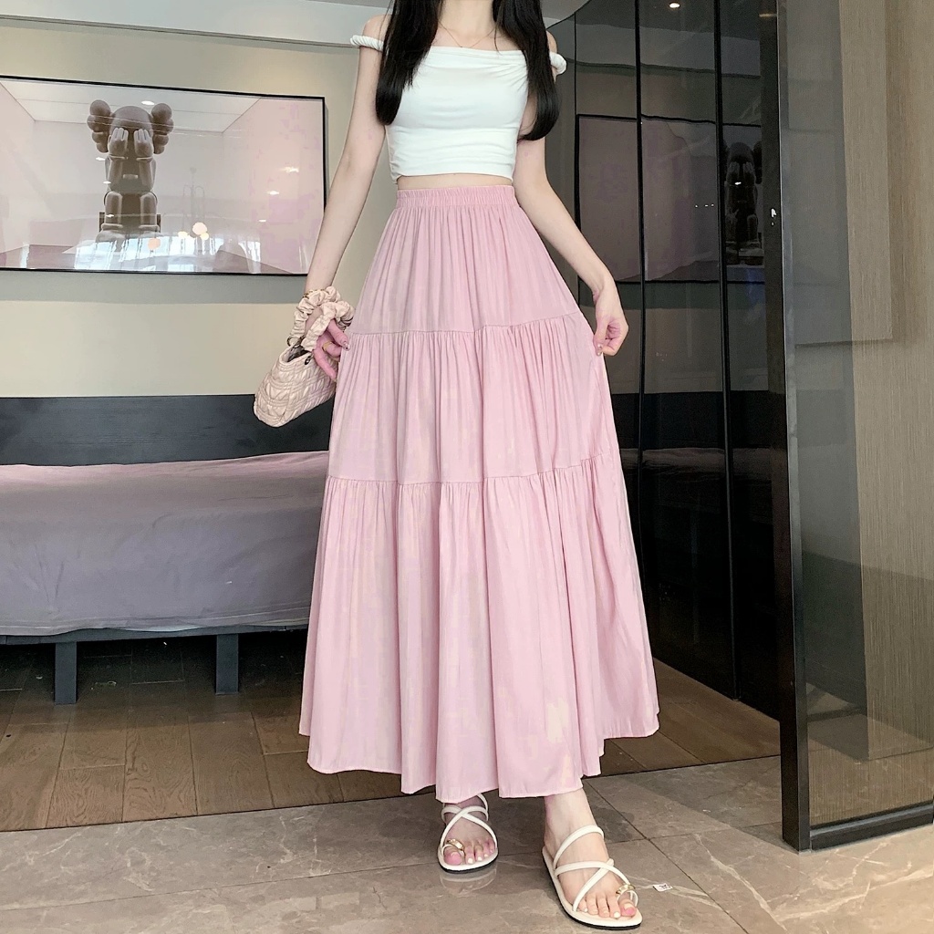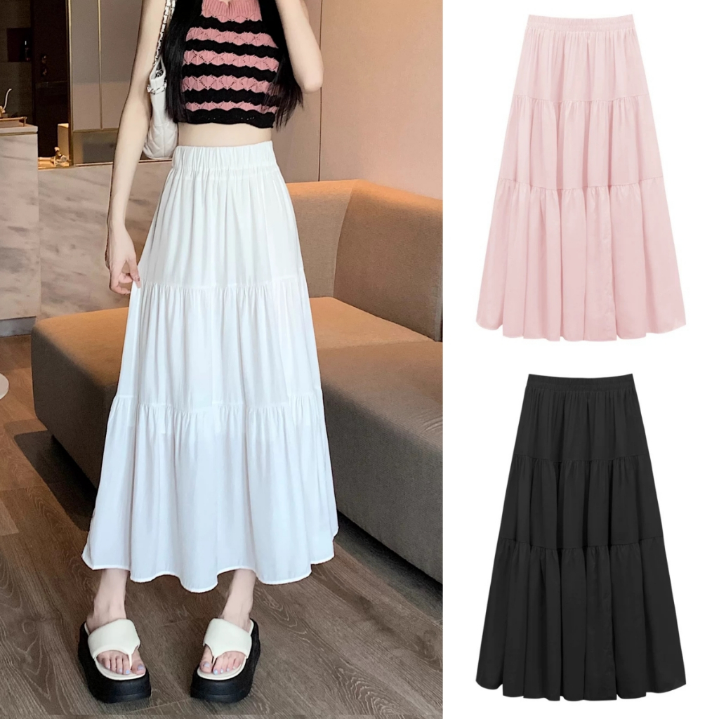 ✅【READY STOCK 】Beryl Solid Color Casual Skirt For Women High-Waist A-line White Skirt Summer Clothing