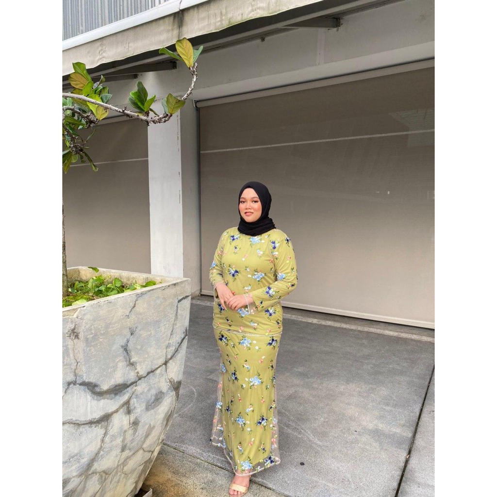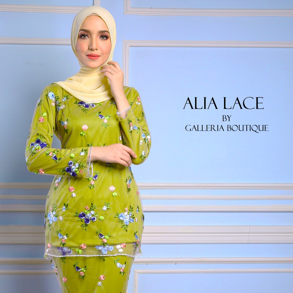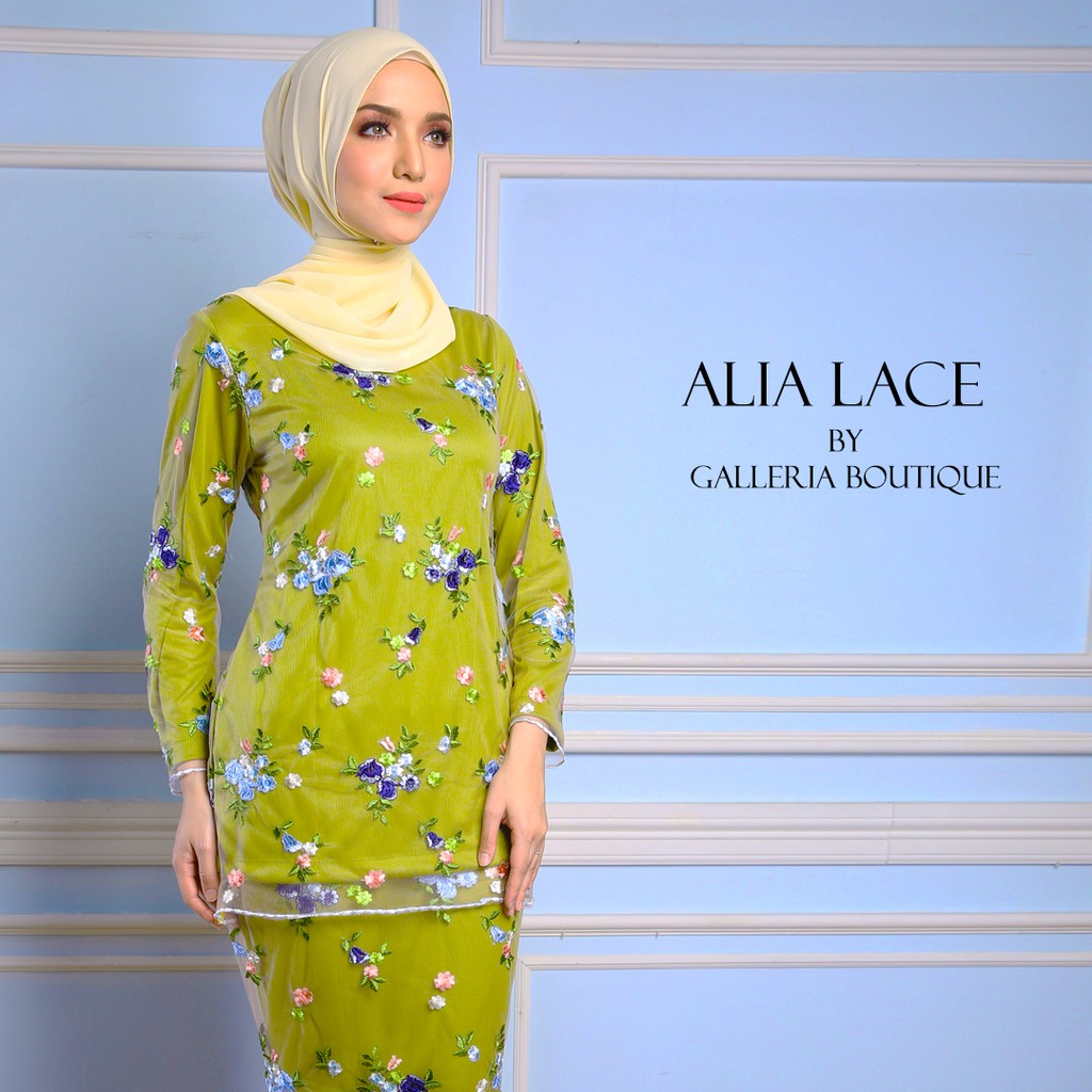 Alia Kurung Lace Hijau Pucuk Pisang 03 Galleria Boutique