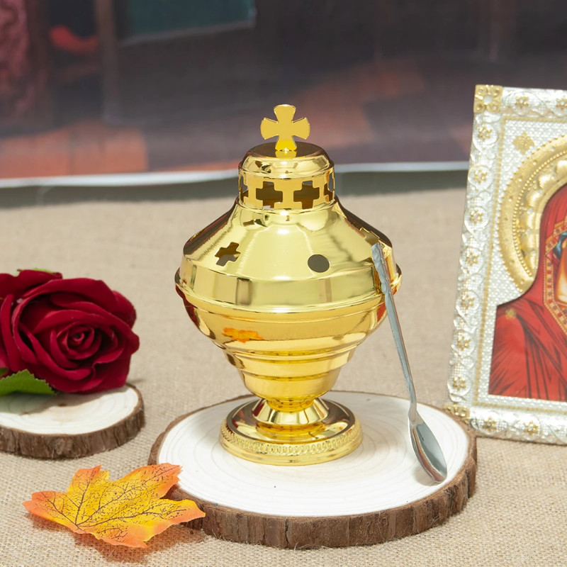 Authentic Orthodox Church Mass Supplies with Greek Style Incense Burners Combining Classic and Eastern Elements.