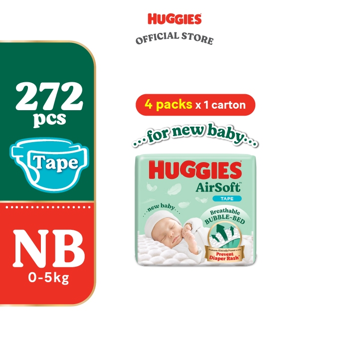 [Pack of 3/4] Huggies Newborn baby (NB / S) Diapers - Dry / AirSoft / Naturemade
