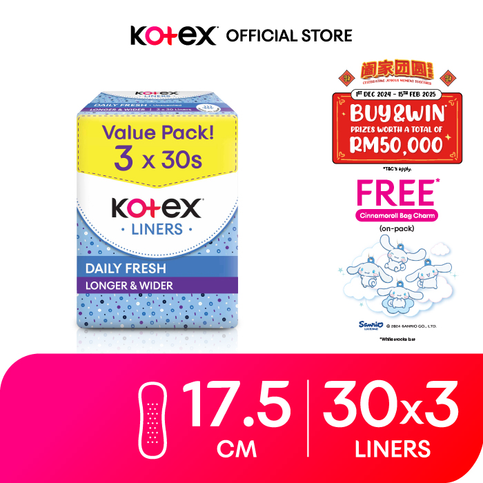 [Shopee for Student] Kotex Regular / Longer & Wider Unscented Panty Liners (3 Packs) - FOC Cinnamoroll Bag Charm