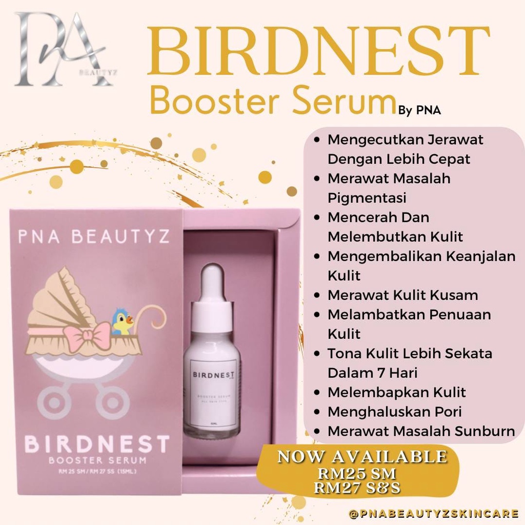 PNA Birdnest Booster Serum 15ml Essence Collagen Propolis NB SD Clara Cera White Rice Grapeseed Oil