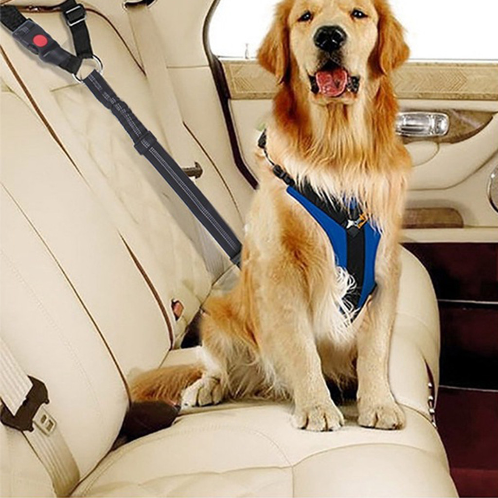 New Dog Car Seatbelt Headrest Restraint 2-in-1 Adjustable Reflective Pet Safety Seat Belt Clip Buckle Tether Large Medium Small Dogs