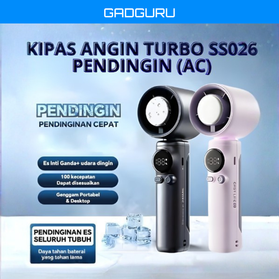 【199-Speed】GADGURU Portable Turbo Handheld Fan Mini Cooling Fan with LED Display & Battery Kipas Mini Boleh Laras & Cas