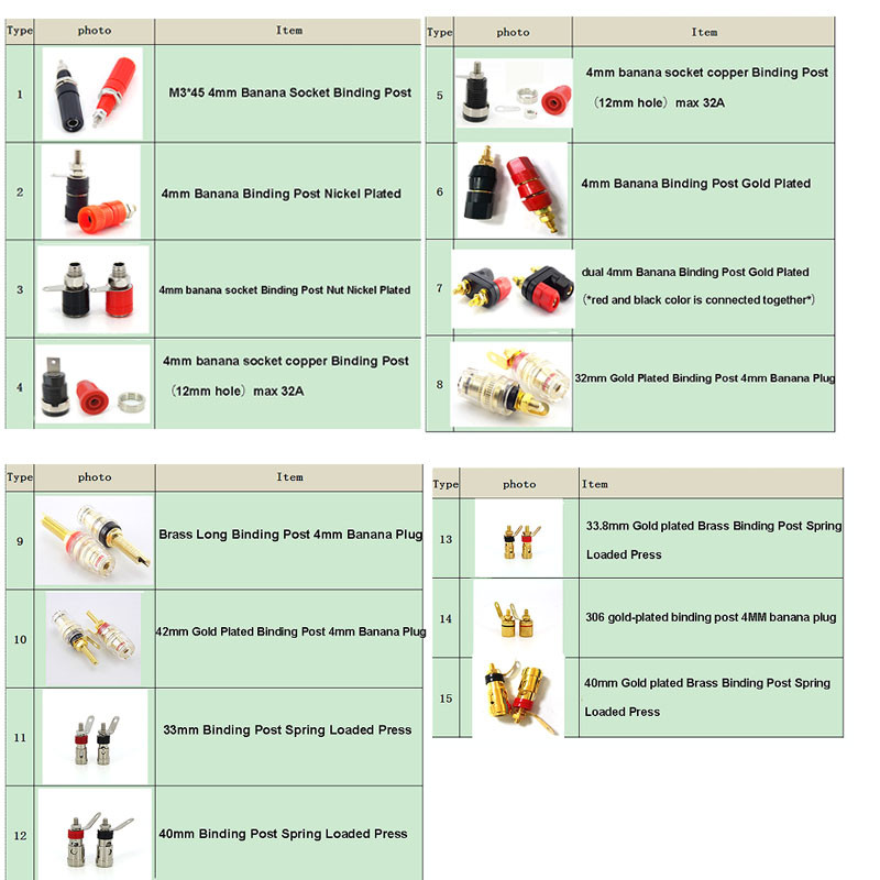 15types red black 4mm Banana Plug Binding Posts Nut Terminals Connector Socket jack Nickel Plated for Amplifier audio MY9B