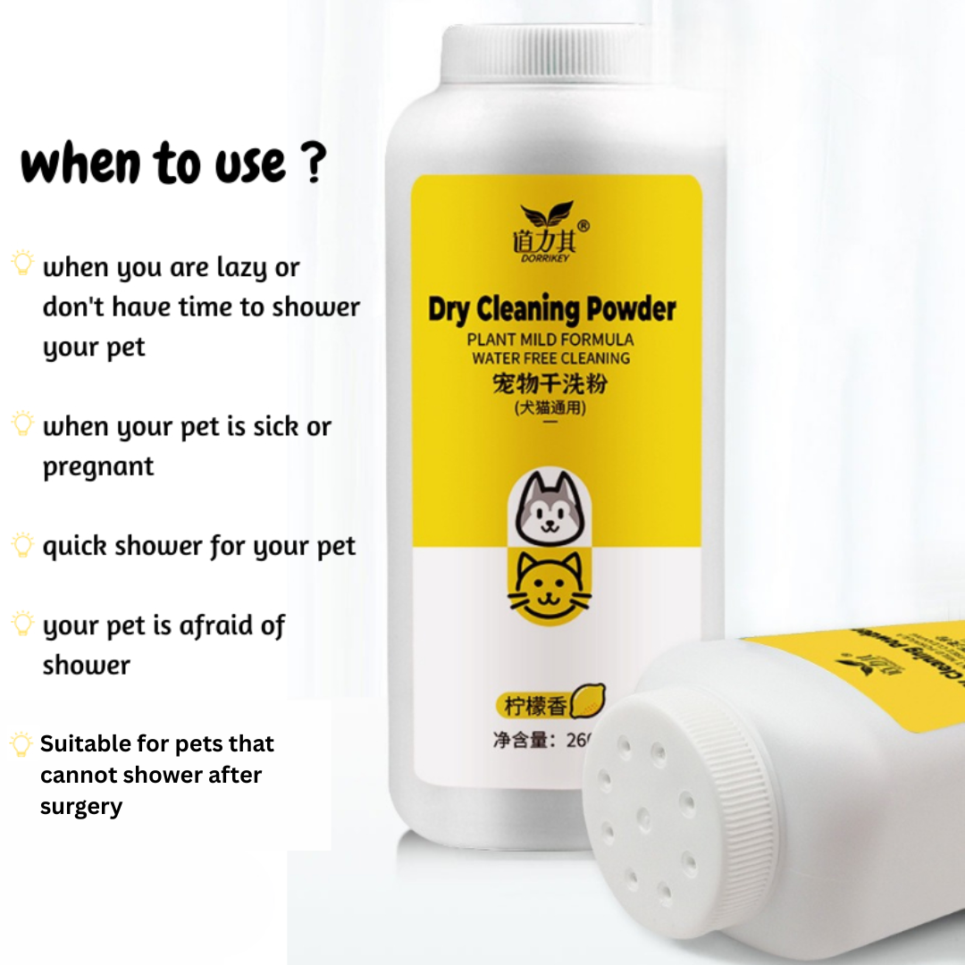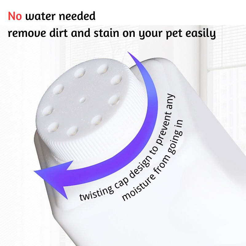 Pet Dog & Cat Dry Shampoo Powder 260g – Deodorizing & Refreshing Pet Bath Supplies