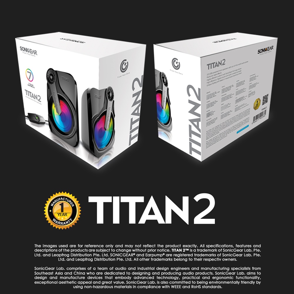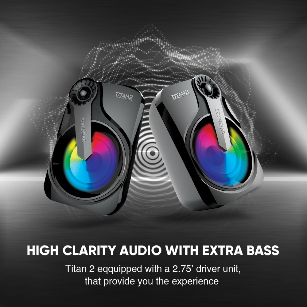 SonicGear Titan 2 Portable 2.0 Speaker with Volume Control | 7 Color Lighting FX | 1 Year Warranty