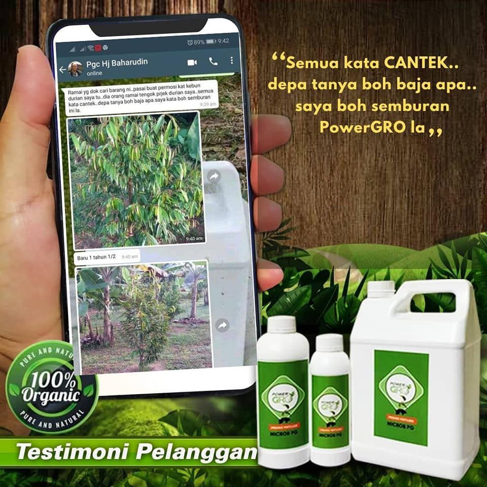 PowerGro 4L Baja Organik Foliar Microb Hidup semburan daun batang bagi bunga, buah, sayuran, durian, mangga dll.