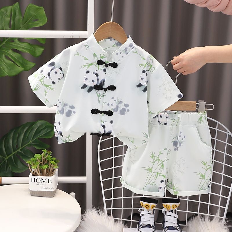 儿童唐装男童2024新中式短袖套装装中国宝宝汉服两件套Children's clothing boy Han clothing suit 2024 antique Tang suit boy children Chinese style10.30