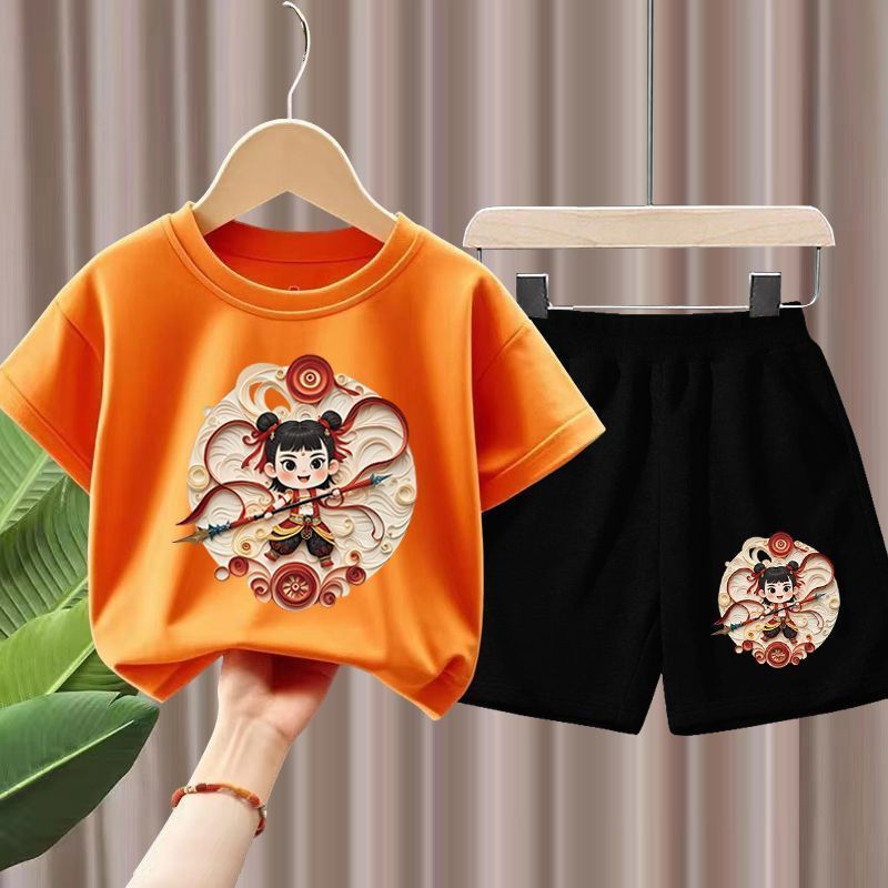 2025新款夏季装短袖T恤短裤男童套装女童哪哪吒儿童衣服两件套2025 New Summer Short Sleeve T-Shirt Shorts20251016