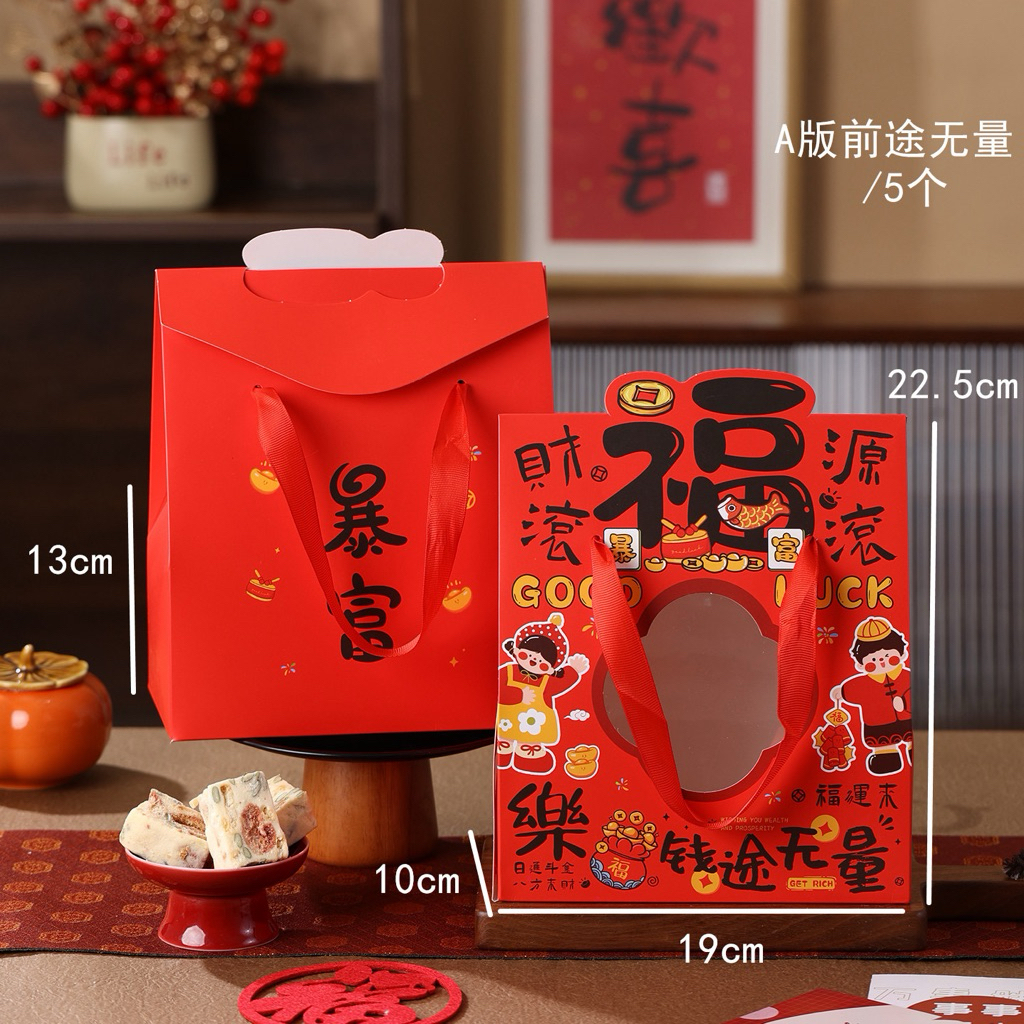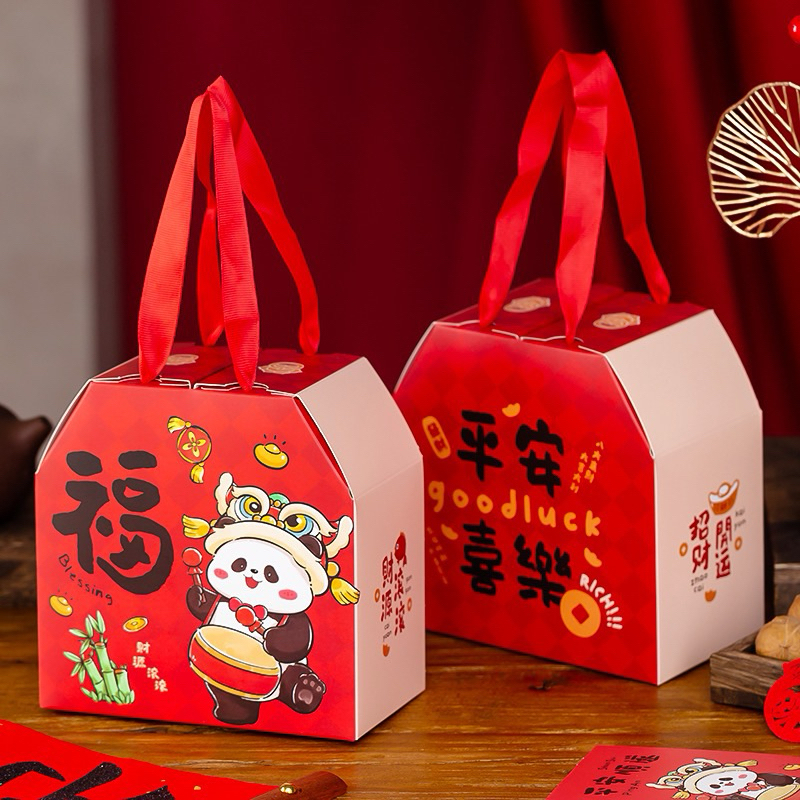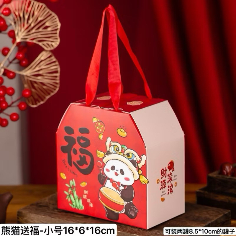 ✅2026春节熊猫送福礼品盒 新年包装盒 年饼坚果礼盒 糖果蜜饯曲奇饼干罐子盒子 烘焙盒子 福盒 手提盒 cny blessing gift box/ cny cookie jar gift box