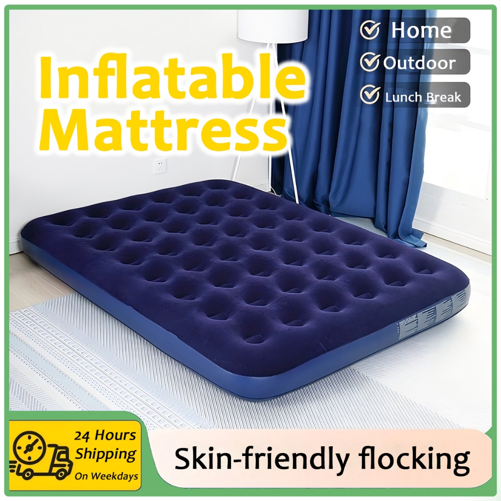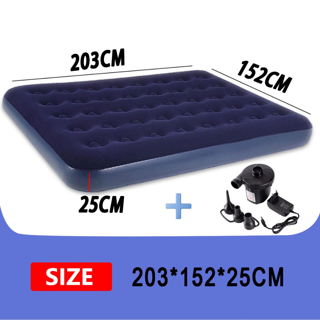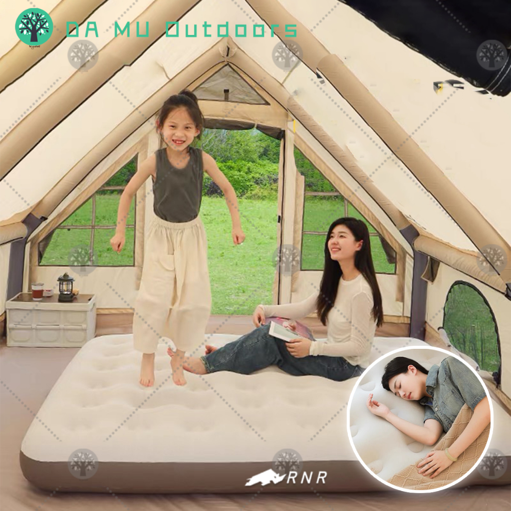 RNR/Tilam Angin Kemping Tebal – Portable Blue Air Mattress with Pump Anti-Leak & Extra Thick Design