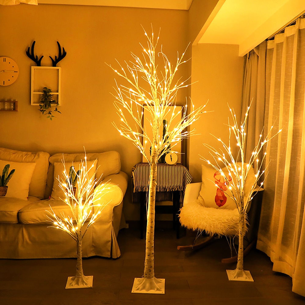 Hiasan LED Tree Birch Lamp Perak malam cahaya Festival Moden untuk Home Holiday Fairy USB Plug