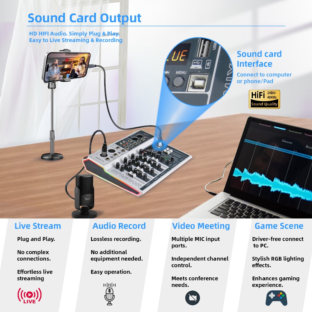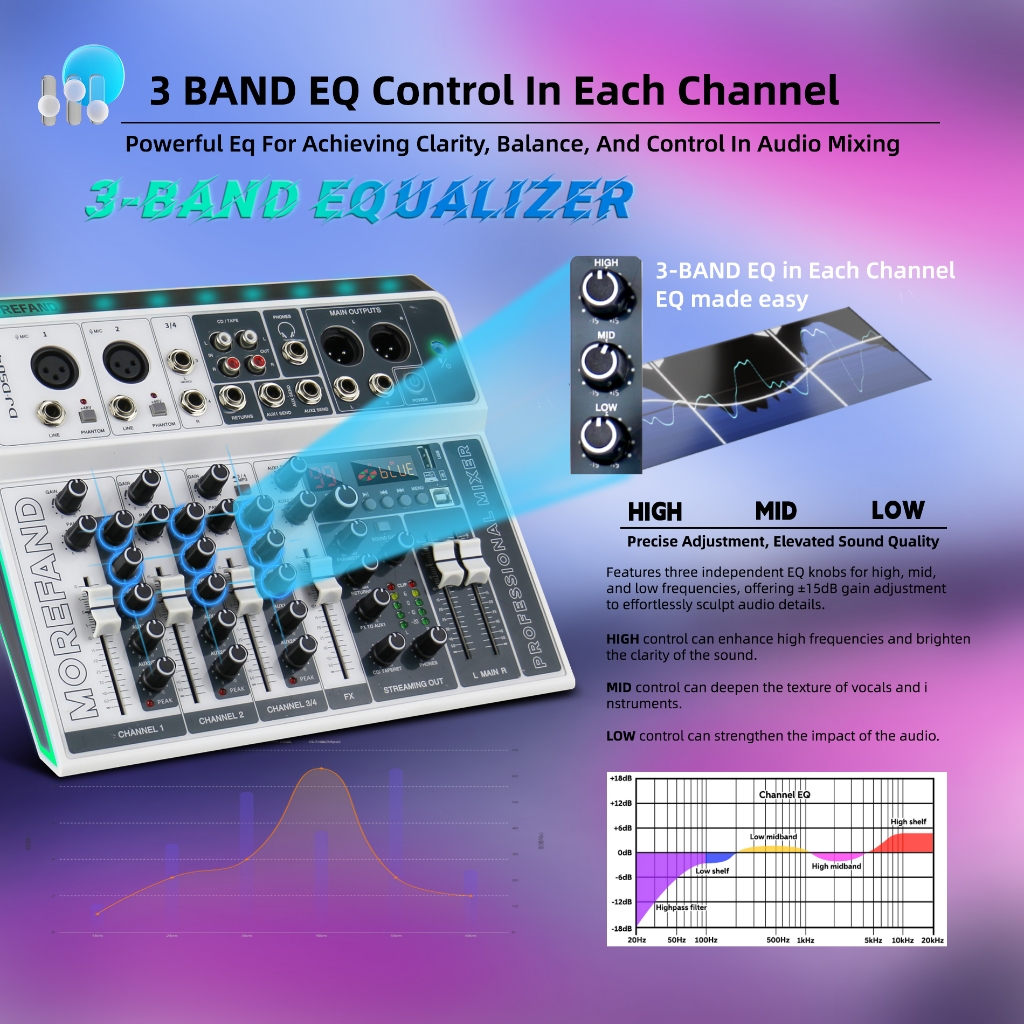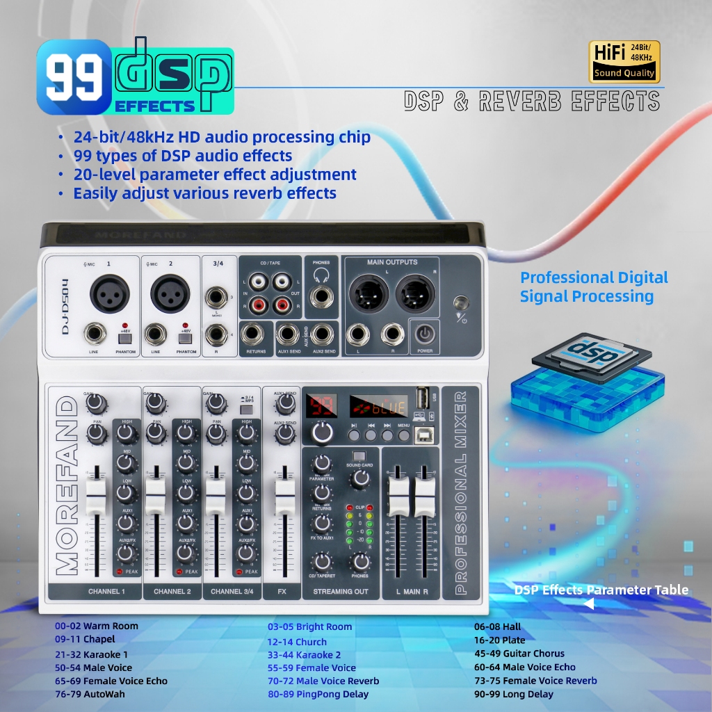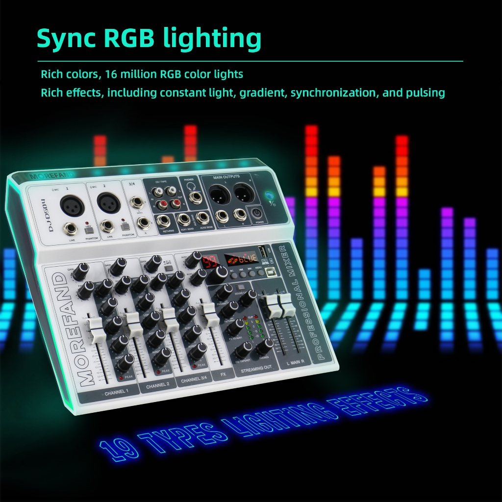 mixer audio DS04 BT Sound Mixing Console Record 48V Phantom Power Monitor AUX Paths Plus Effects 4 Channels Audio Mixer with USB