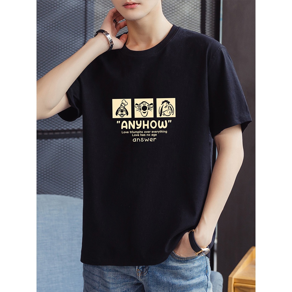 ✅COD korean men outfit plain t shirt Printed T-shirt plus size black t shirt summer round neck top
