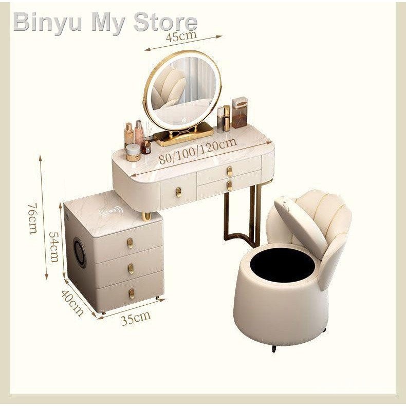 Dressing table with mirror Solid wood bedroom dresser, smart home, multifunctional Nordic black technology audio Bluetooth, light luxury and simpli