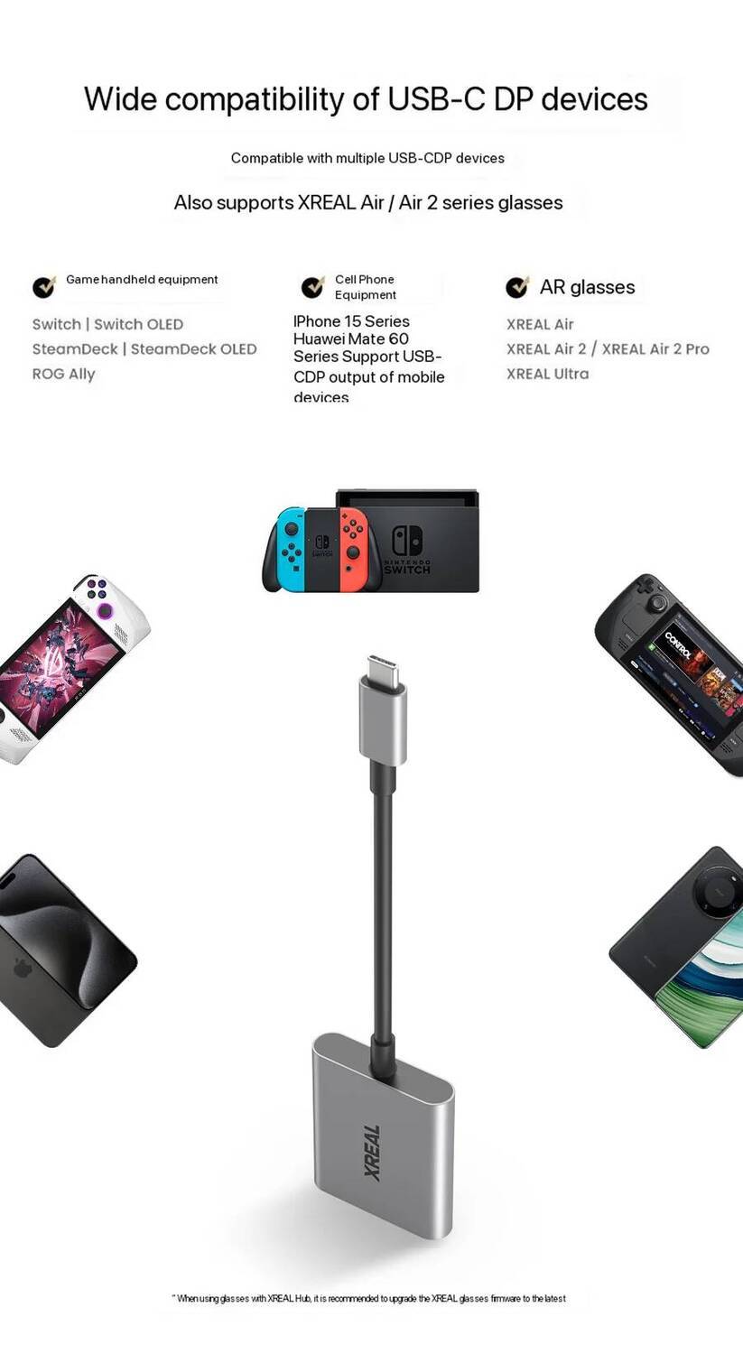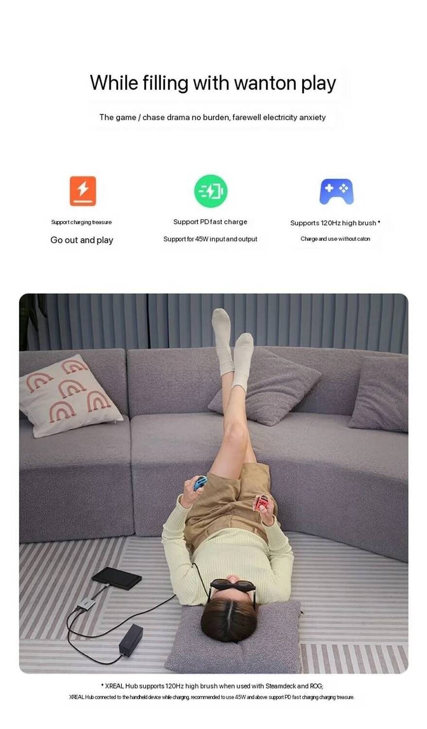 XREAL Hub 120hz 2IN1 USB-C PD Fast Charging Adapter Portable Video Adapter for XREAL AIR/AIR2 for Switch PS4 PS5 Converter