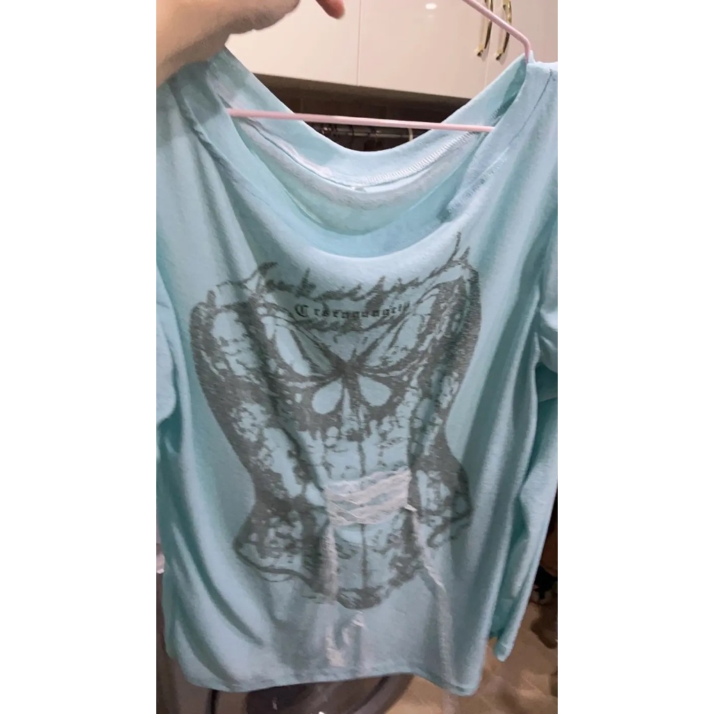 ❤American Hot Girl Printed One-Shoulder Long-Sleeved T-Shirt Summer New Style Lightweight Sunscreen Blouse Top