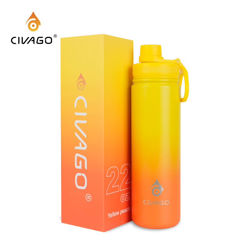 CIVAGO(22oz)Wide Mouth with Sport Lid Vacuum Insulated Tumbler Hot And Cold Drinking Water Bottle