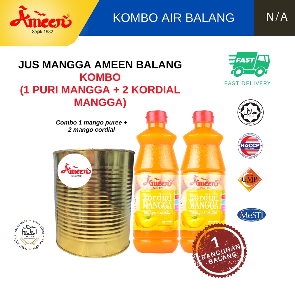 AMEEN Jus Mangga Air Balang Puri Mangga | Combo 1 Mango Puree + 2 Mango Cordial