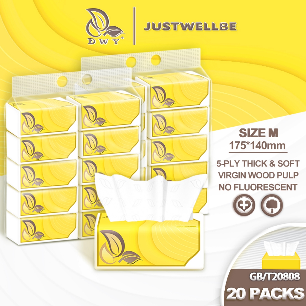 【20Packs】DWY 5 Ply Natural Wood Pulp Soft Thickened High Absorbency Tissue