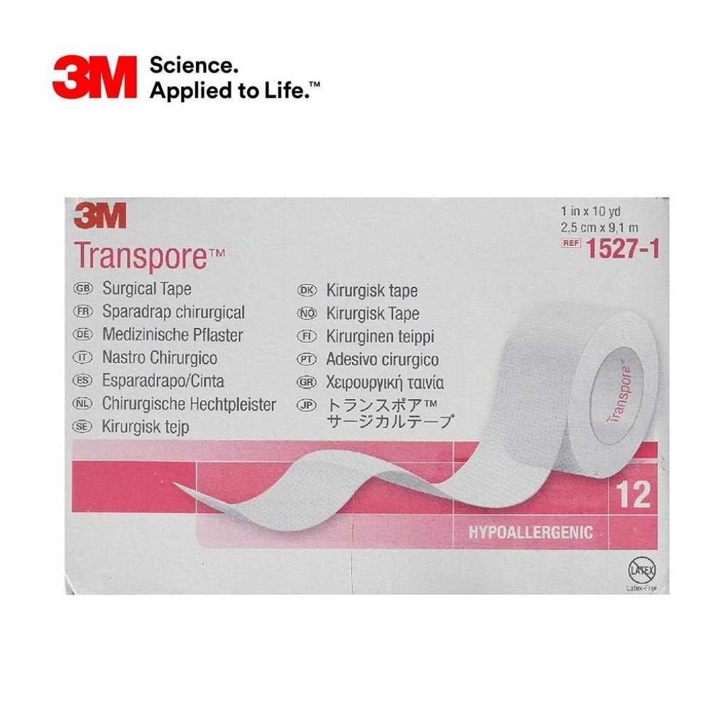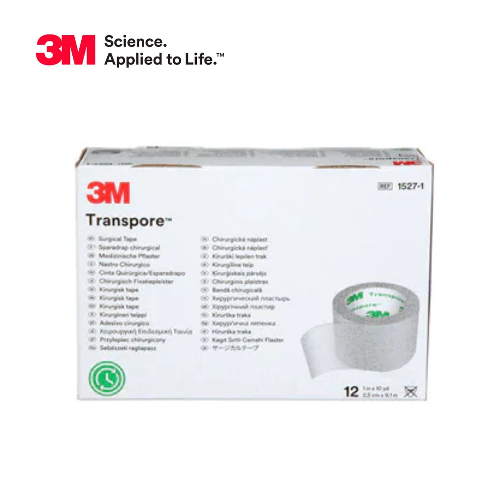 3M Transpore Surgical Tape, 1527-1, 1 in x 10 yd (2.5 cm x 9.1 m), 12 Rolls/Box
