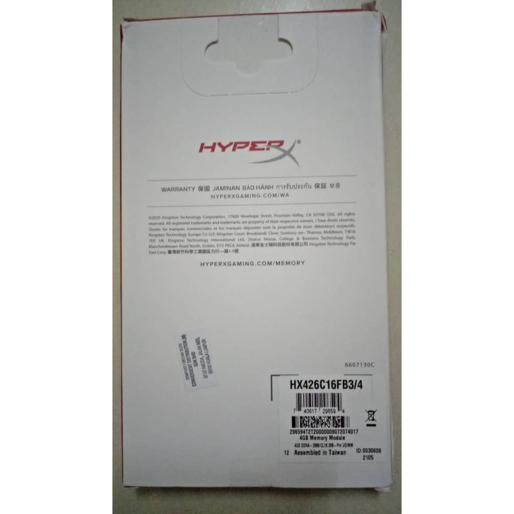 Kingston HyperX FURY DDR4 2666 Mhz Desktop RAM 4GB