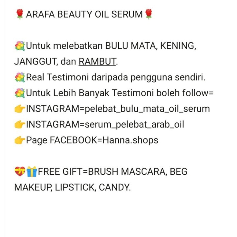 Serum Pelebat Bulu Mata, Kening Dan Rambut-ARAFA BEAUTY (GOLD HAIR SERUM) DIJAMIN BERKESAN with FREE GIFT🎁