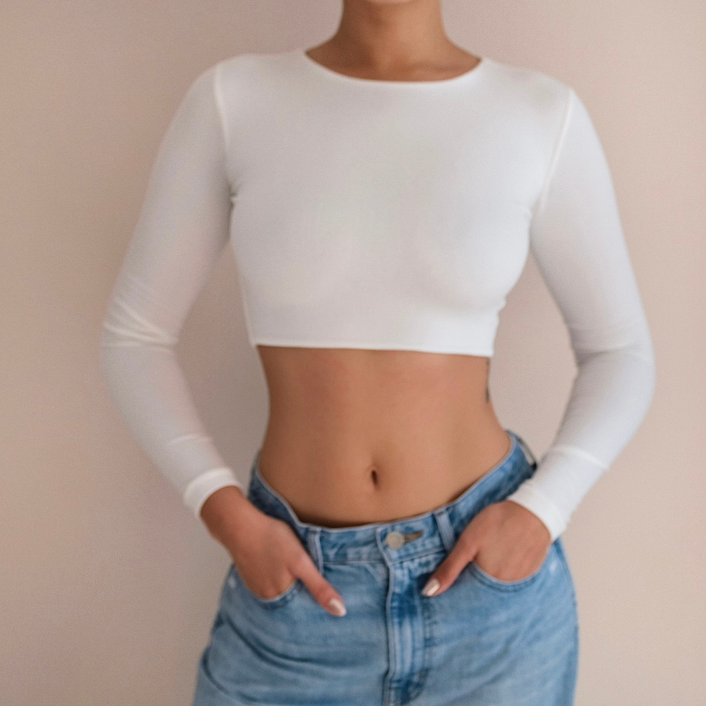 Mera Orlanda Long Sleeve Long Sleeve Crop Top Slim-fitting Crew Neck Womenswear Soft Tee Cotton Basi