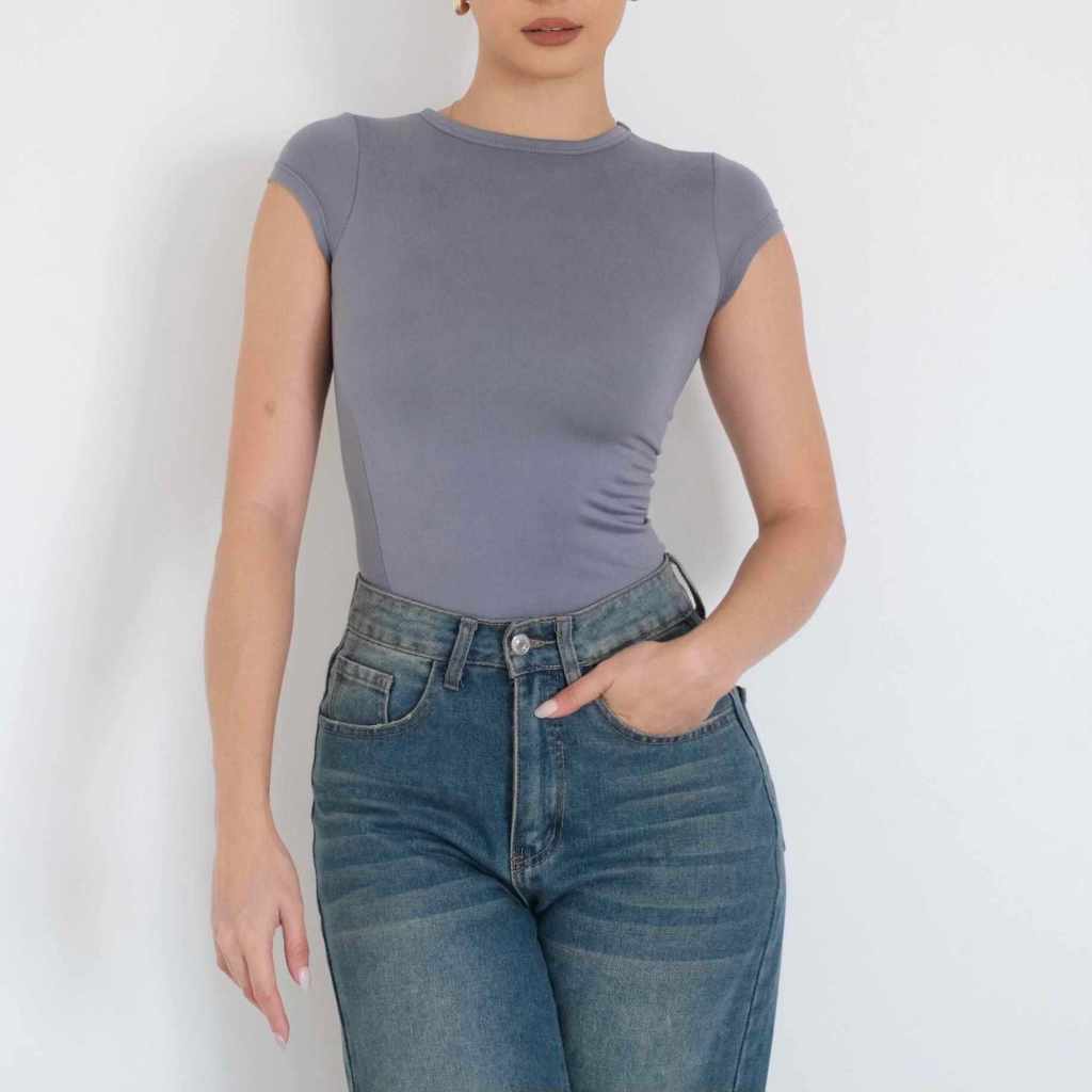 Mera Naomi T-shirt Basic Plain Cotton Roundneck Slim-fitting Womenswear Casual Top Skinny Sleeve Bre