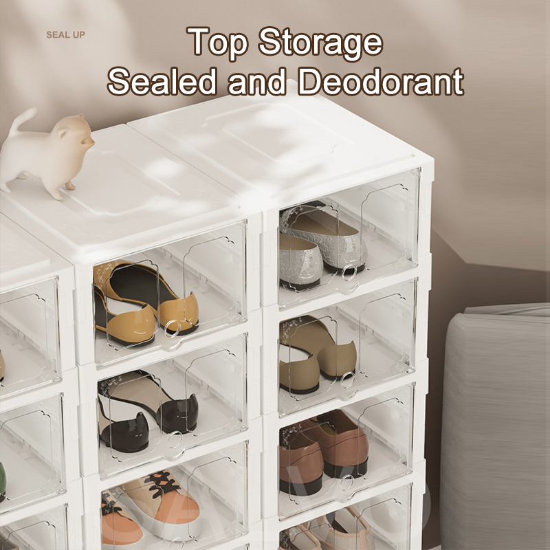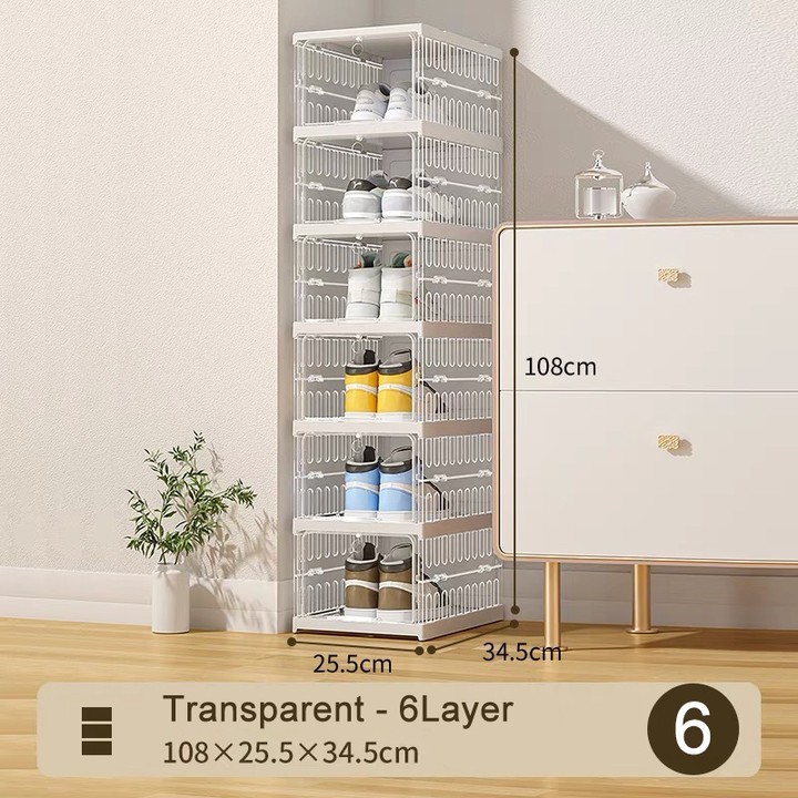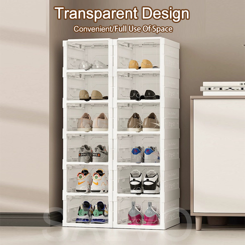 IKun 8/10 Tier Foldable Shoe Box Transparent Shoe Storage Box Kotak Kasut Rak Kasut Bertutup Shoe Rack Cabinet 鞋盒/鞋架