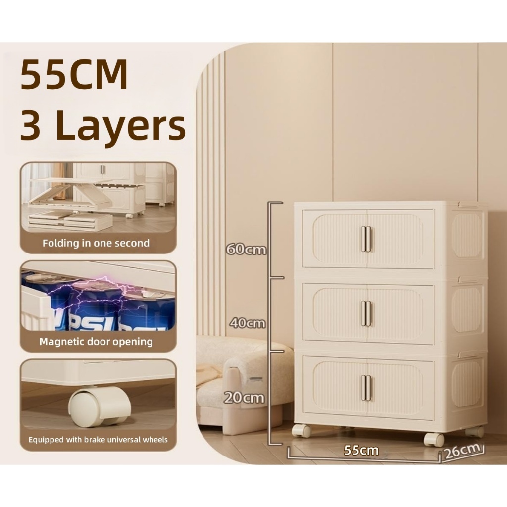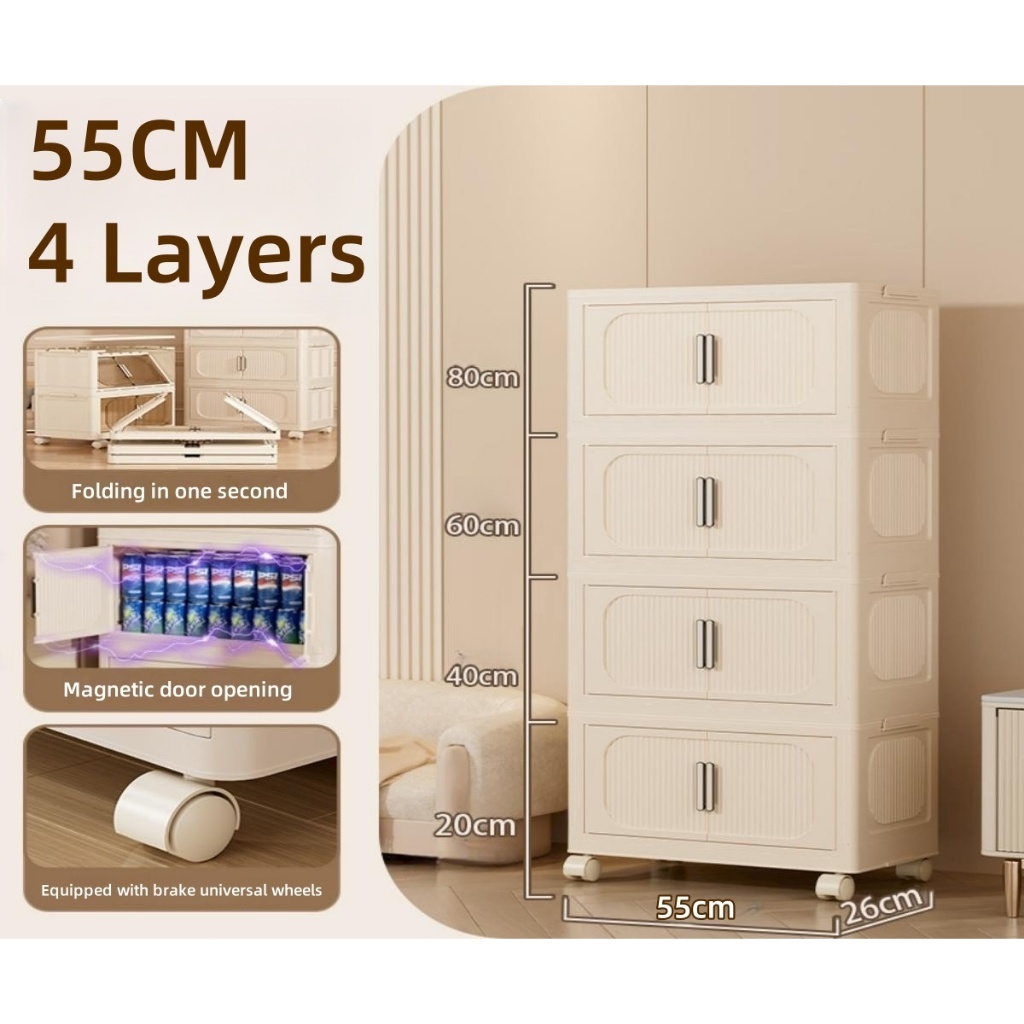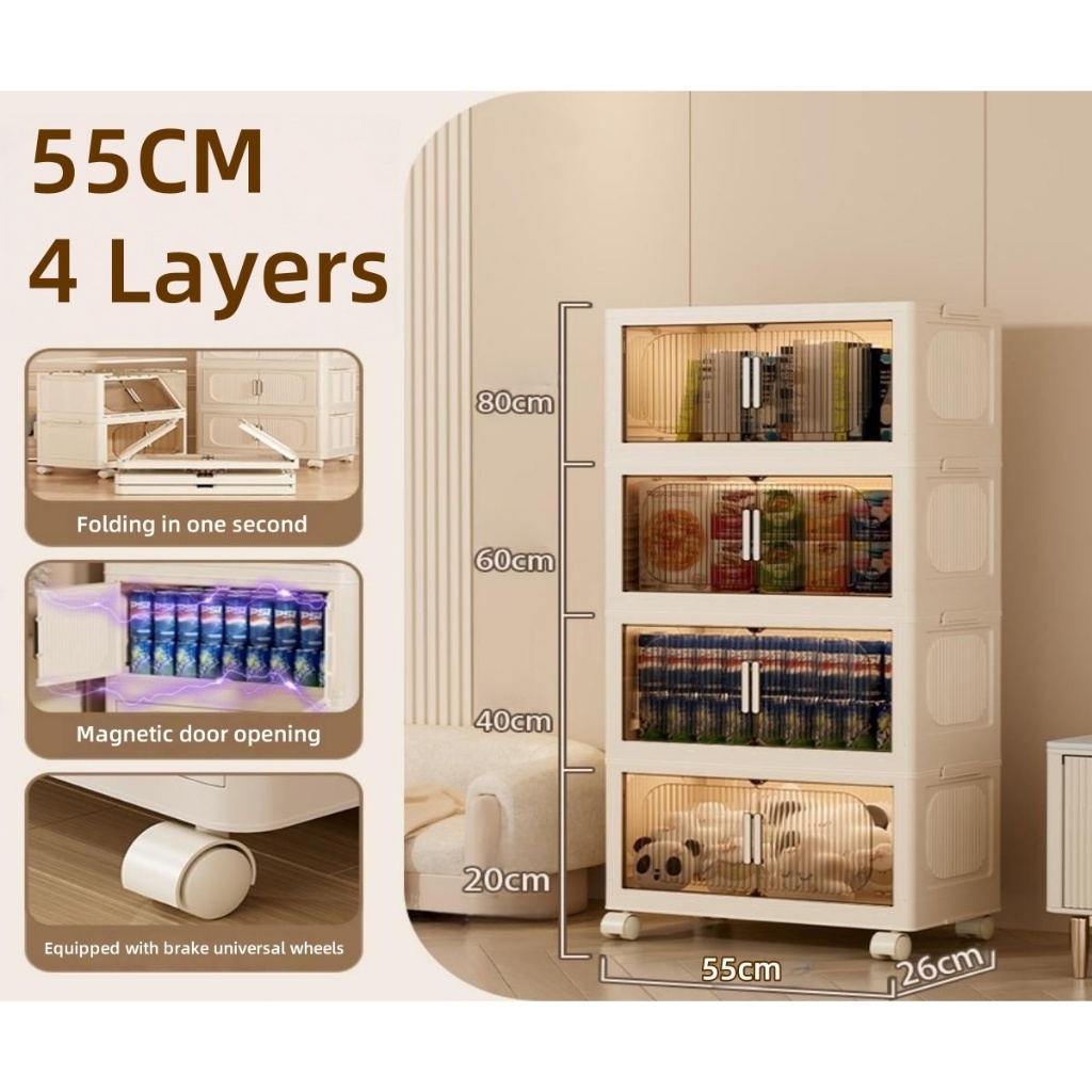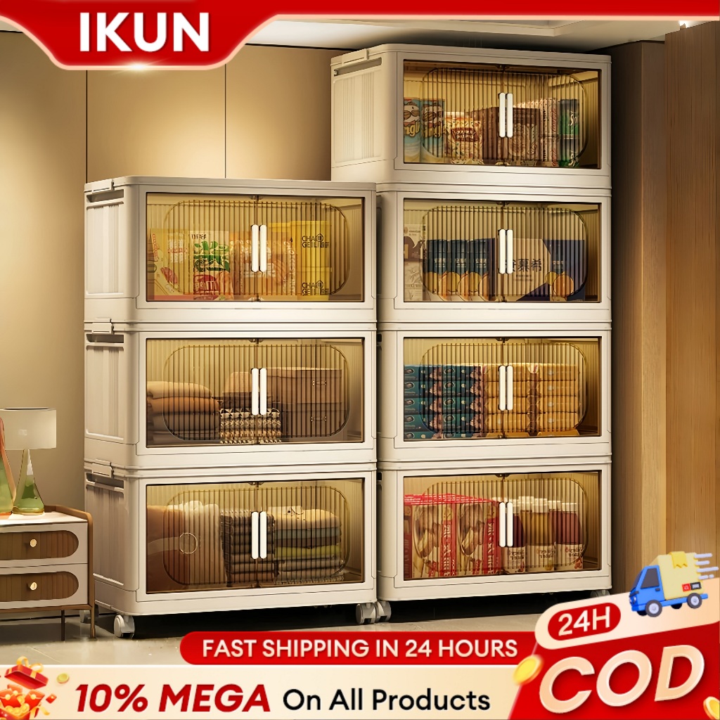 IKun Magnetic Foldable Storage Cabinet With Wheels No Installation Clothes Storage Box Almari Baju Kitchen Cabinet 折疊收納櫃