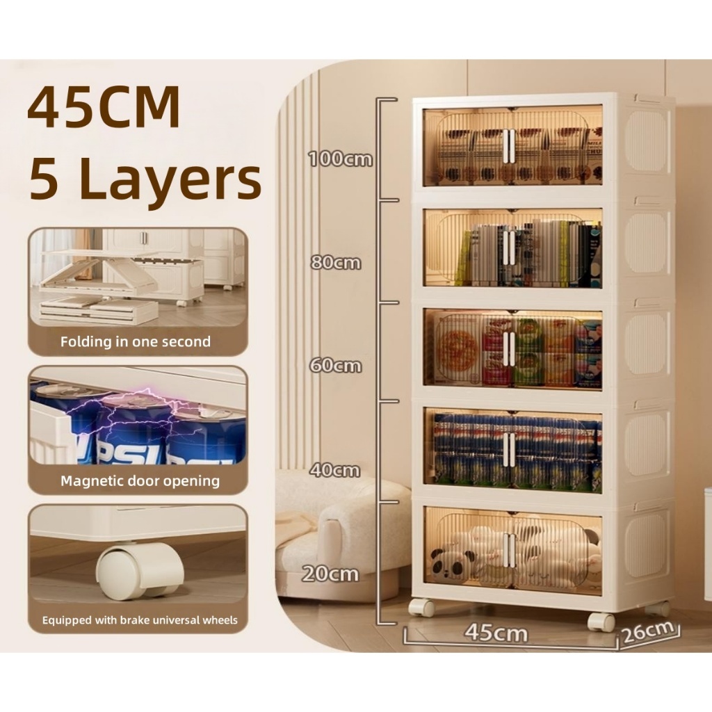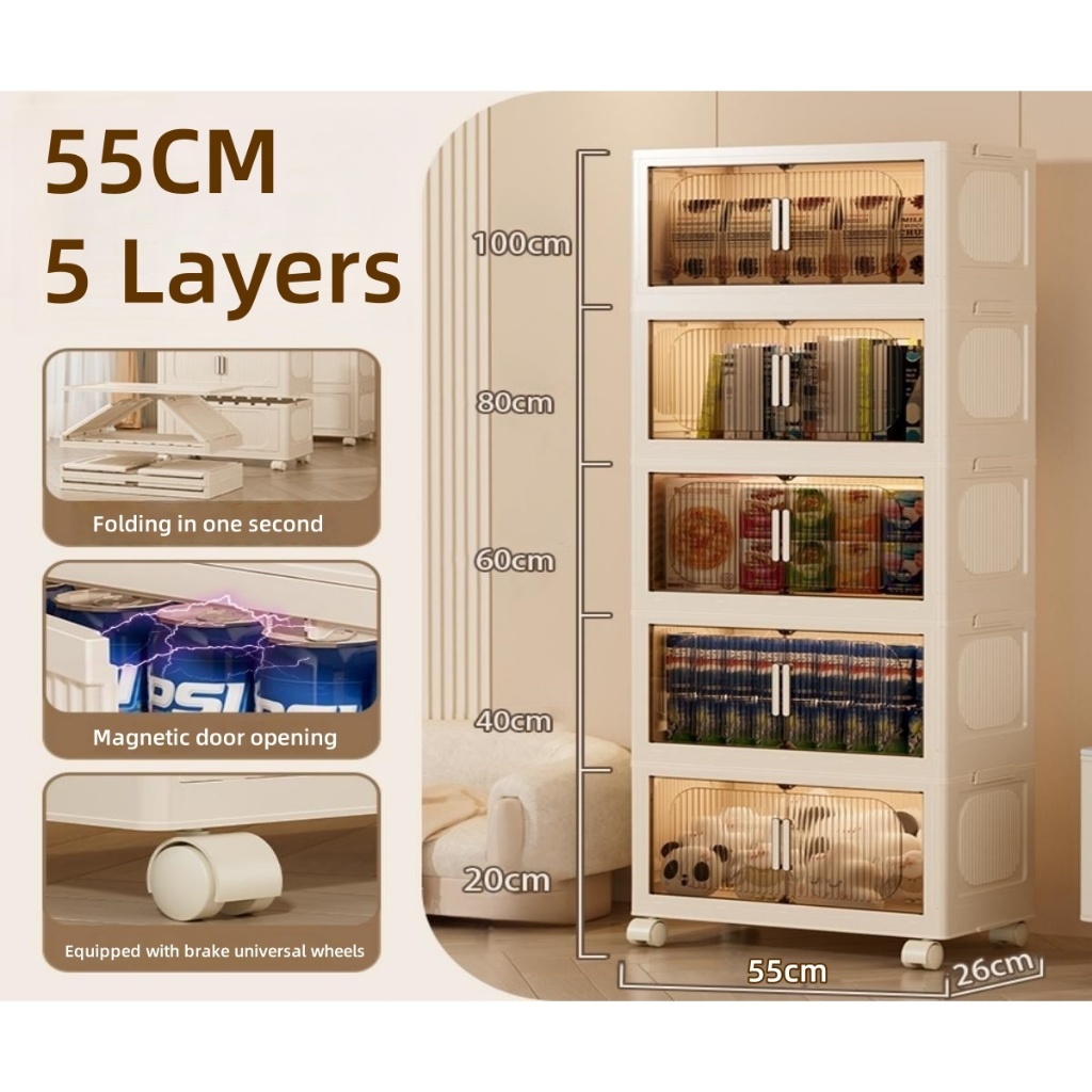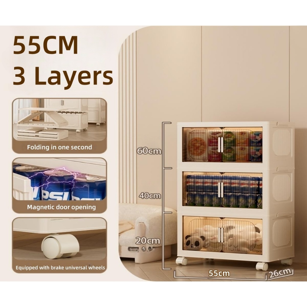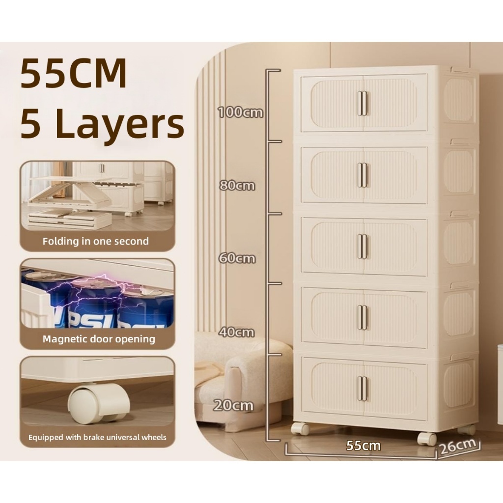 IKun Magnetic Foldable Storage Cabinet With Wheels No Installation Clothes Storage Box Almari Baju Kitchen Cabinet 折疊收納櫃