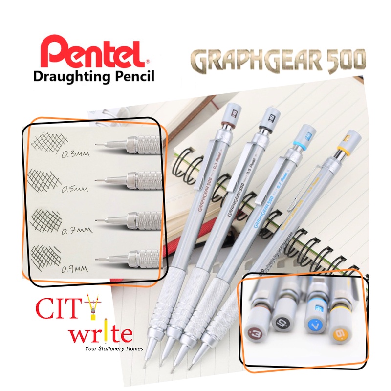 <Pentel Graph Gear 500 Draughting Pencil> Graphgear 500 Drafting Mechanical Pencil 0.3mm 0.5mm 0.7mm 0.9mm Architecture