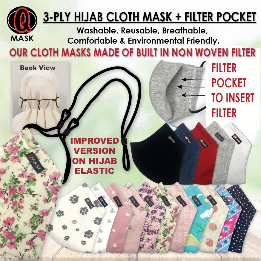 ADULT HIJAB 100% Handmade 3 PLY Cotton Cloth Face Mask in 3D Design #Man & Woman #Reusable#Washable#Filter Pocket.