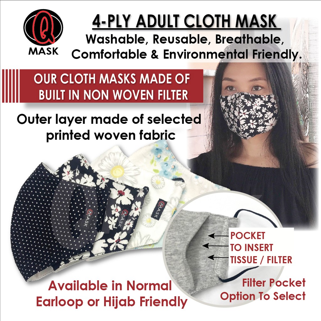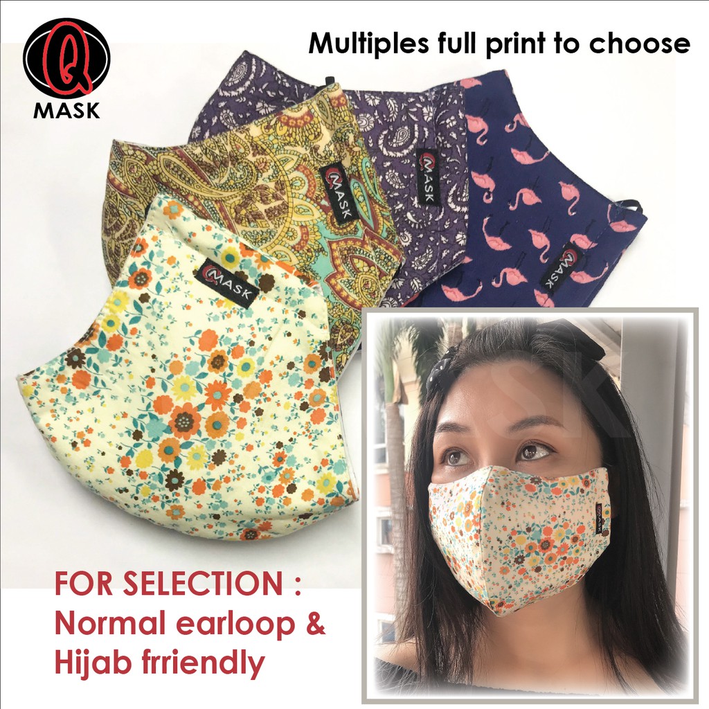 Adult 4-PLY Cotton Cloth Mask With Fashion Full Print in 3D Design #Woven#Hijab Friendly#Earloop#Filter Pocket#Stopper