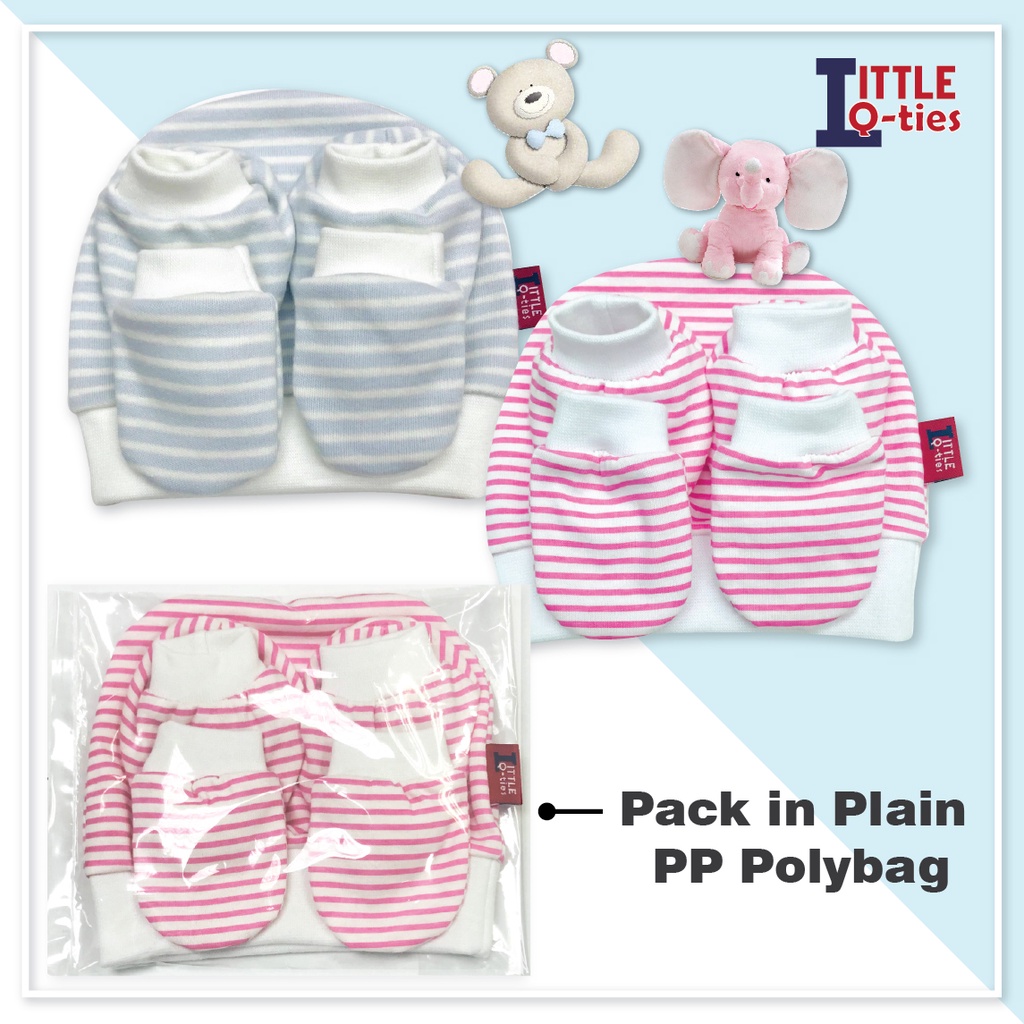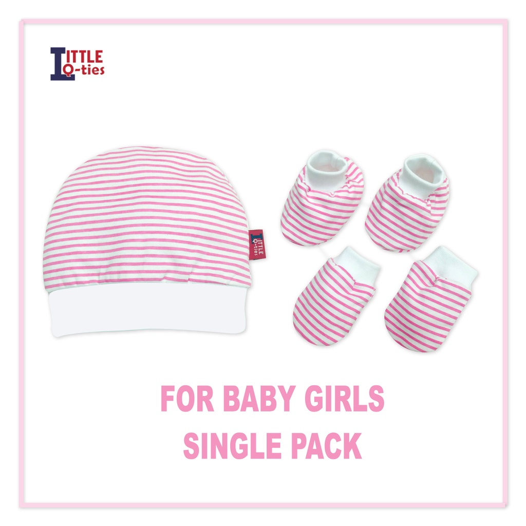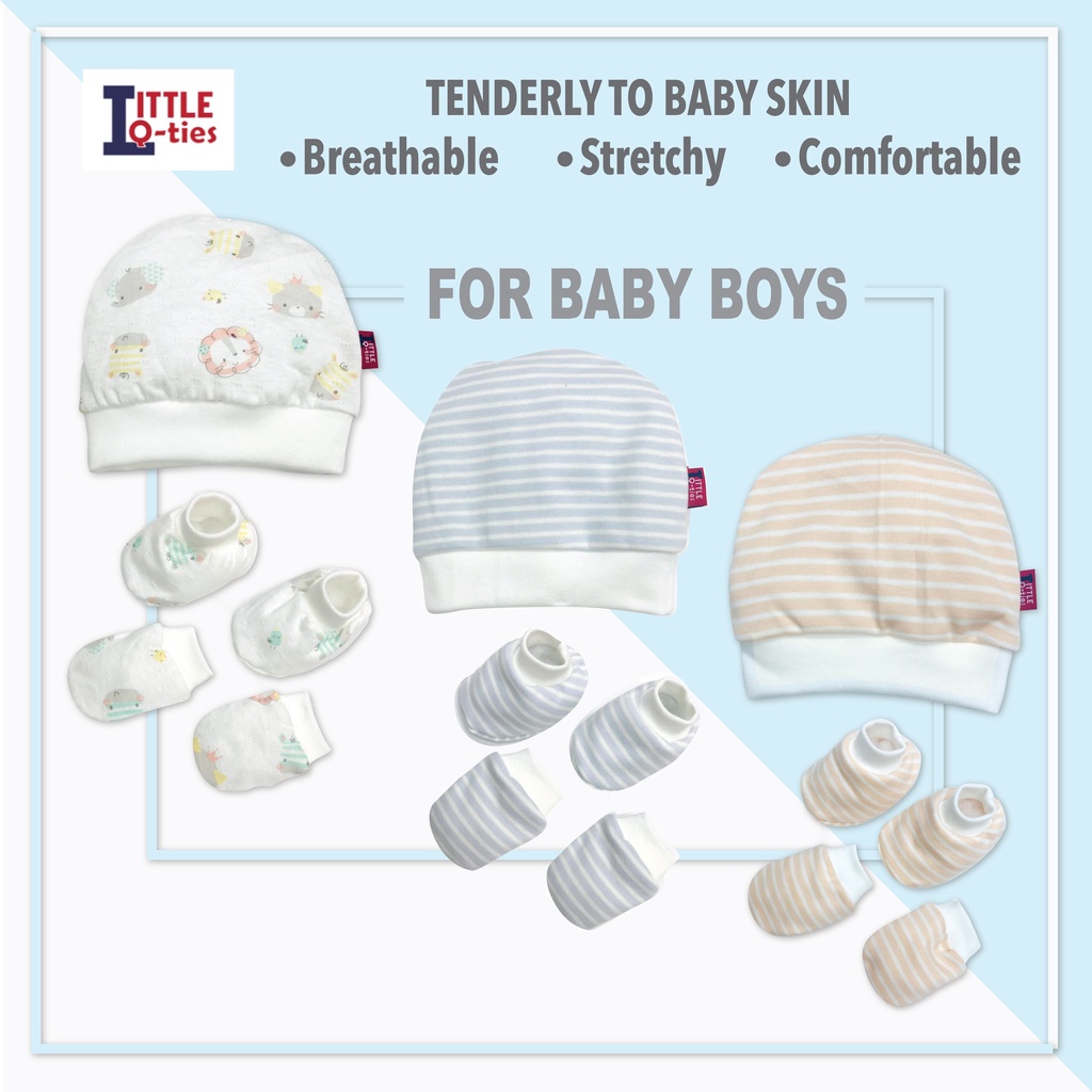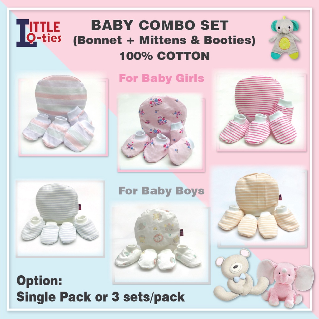 100% Cotton Newborn Baby Bonnet, Mittens & Booties Set for Boys & Girls.