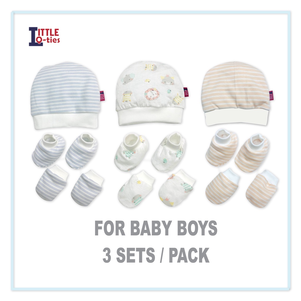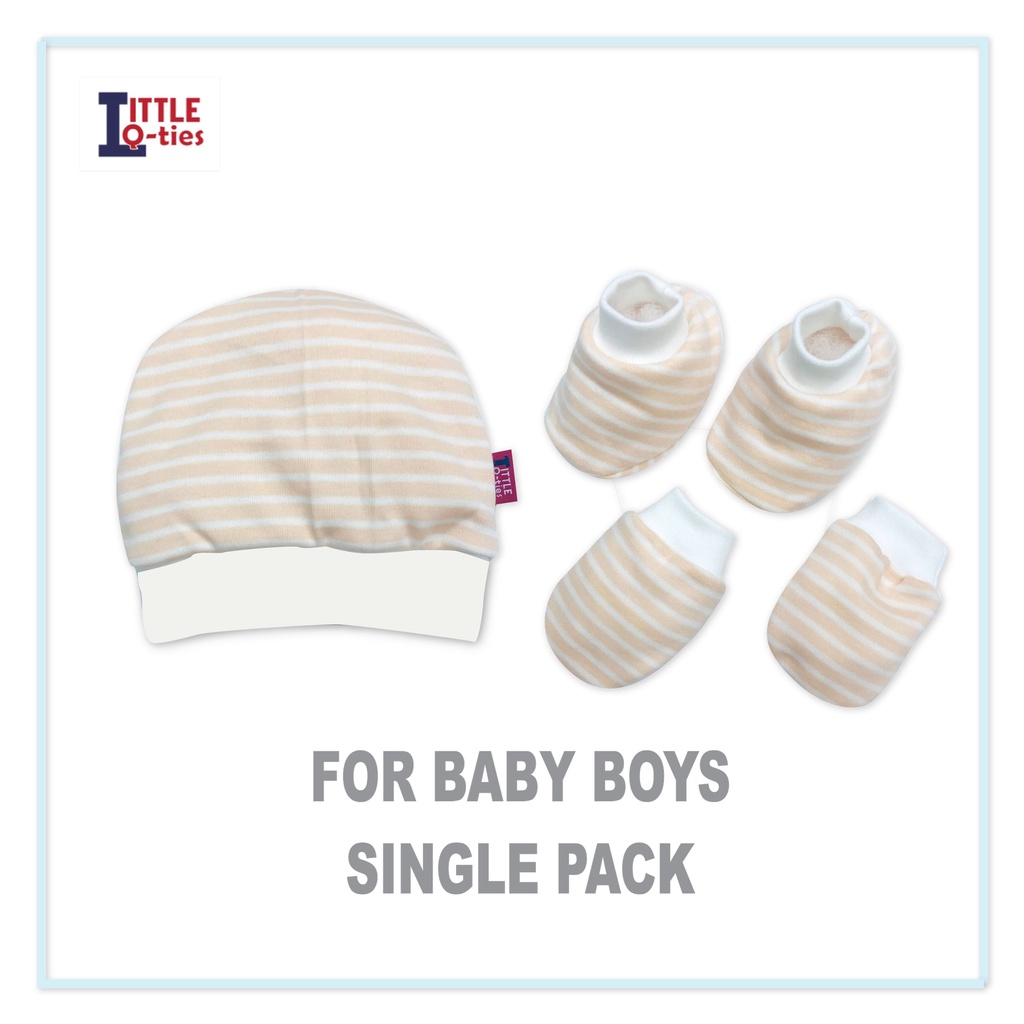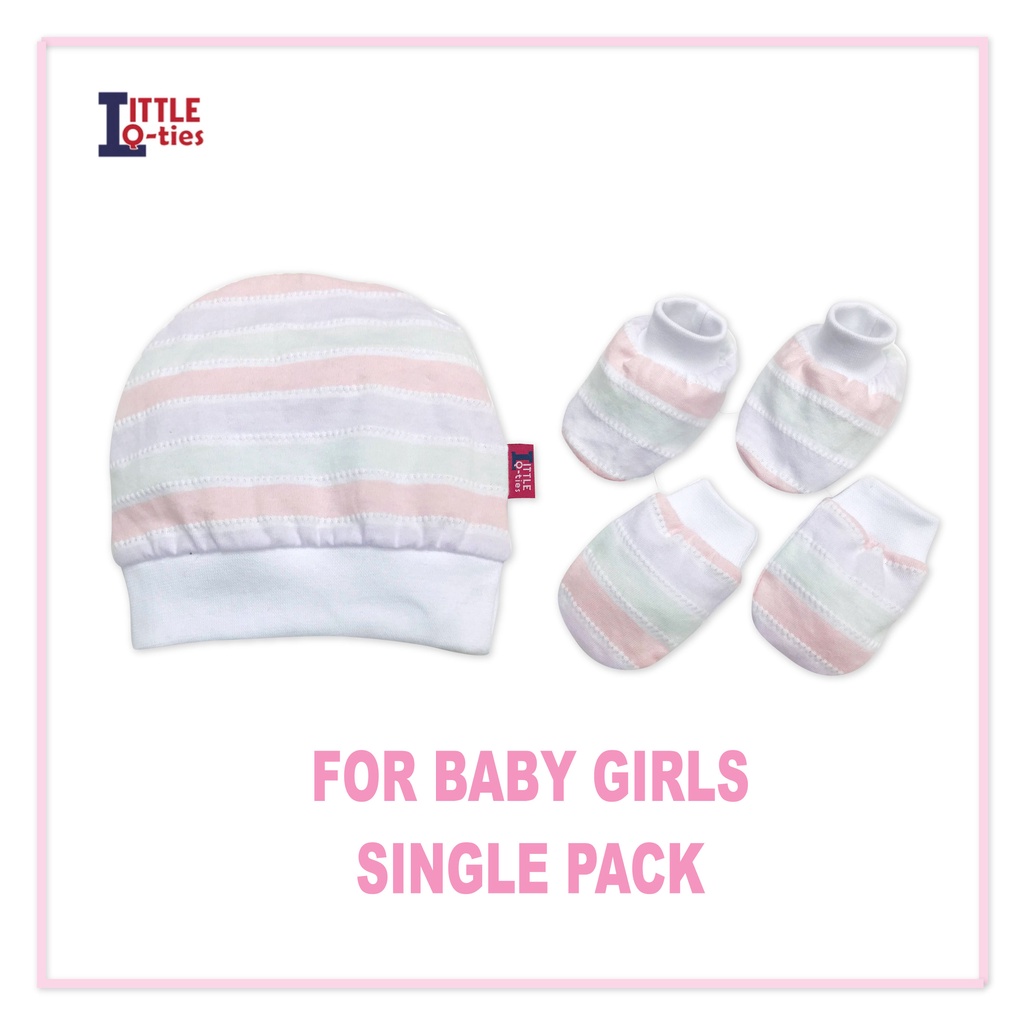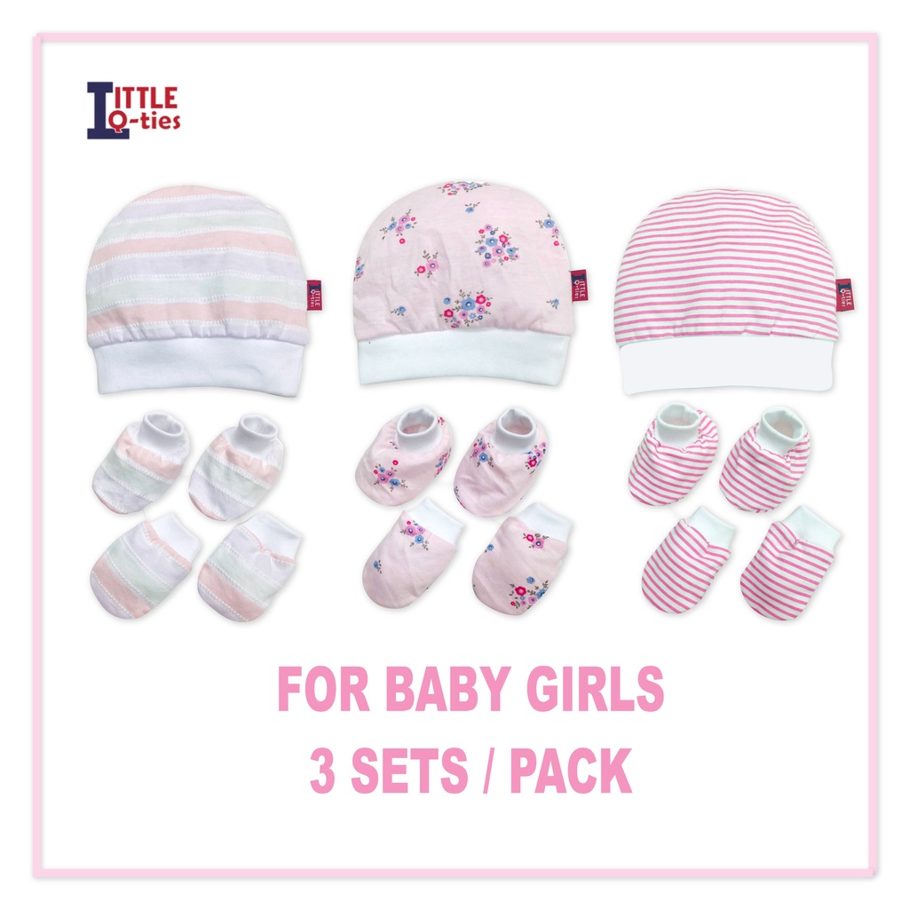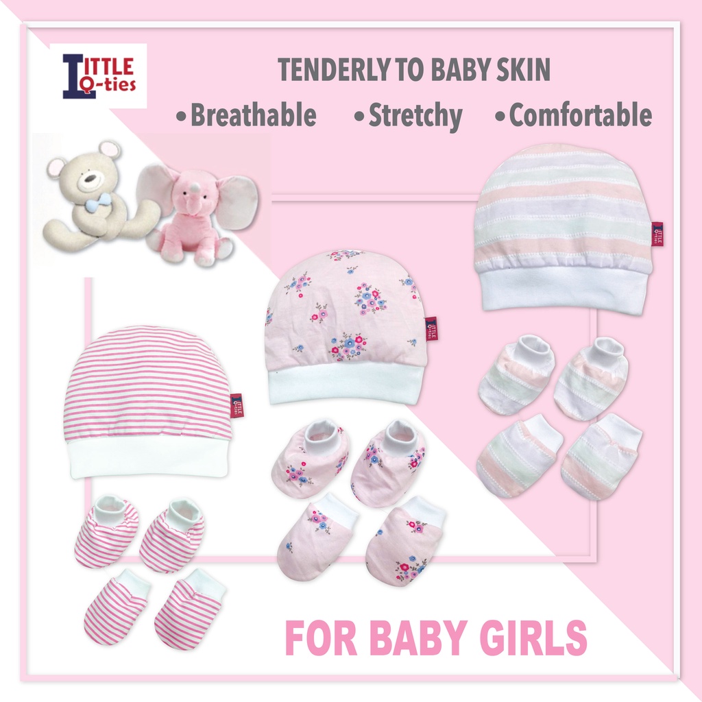 100% Cotton Newborn Baby Bonnet, Mittens & Booties Set for Boys & Girls.