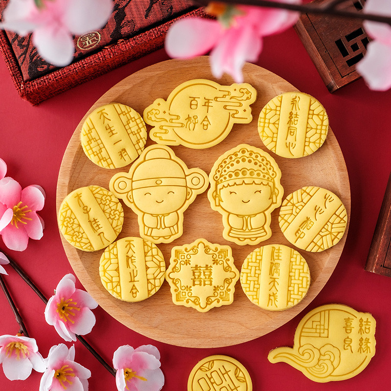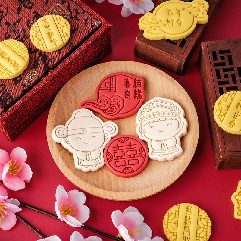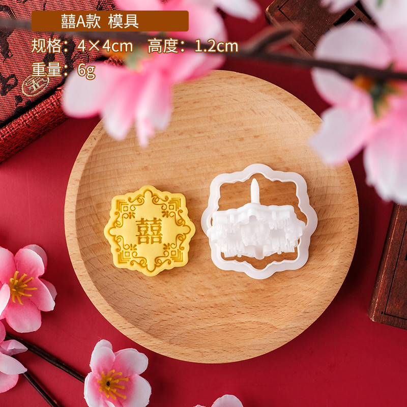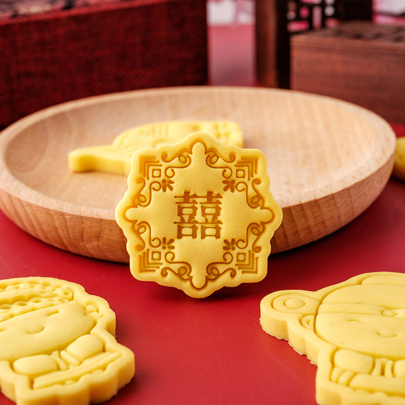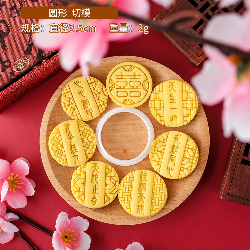 中式婚礼饼干馒头模具囍字甜品台装饰翻糖曲奇切模烘焙工具Chinese wedding biscuit Mantou mould double happiness character dessert tablexioyuwa1.my20241115