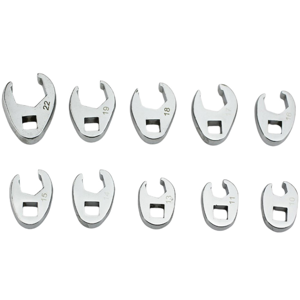 Size Identified Crowfoot Wrenches 10mm to 22mm Metric Foot 3/8 Inch Drive 10 Pcs