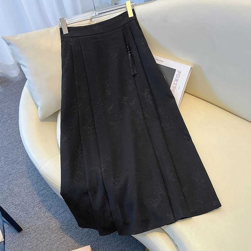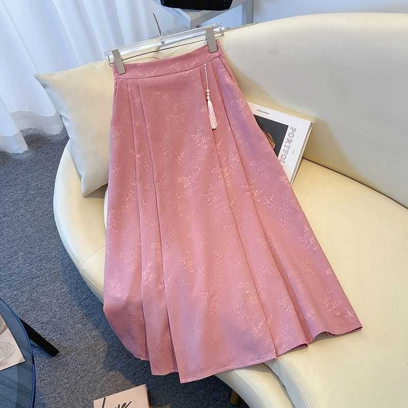 国风提花粉色半身裙女装新中式马面长裙春2024新款气质字百搭裙QL