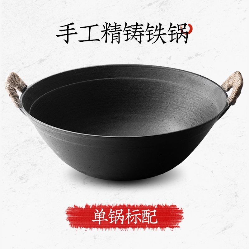 生铁锅双耳传统老式炒锅家用无涂层不粘锅铸铁大铁锅燃气灶用圆底Iron pot with double ears, traditional old-fashioned stir fry pan, household use, unpaintequeshibaka2.my20250308