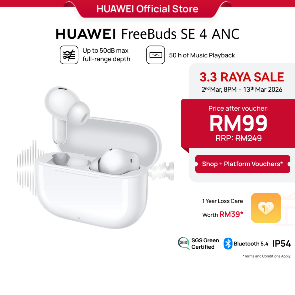 [Online Exclusive] HUAWEI FreeBuds SE 4 ANC Earbuds l Up to 50dB Maximum Full-range Depth l 50H Long Battery Life l IP54