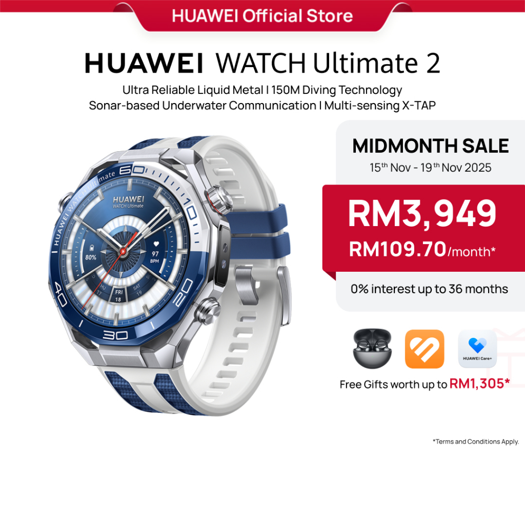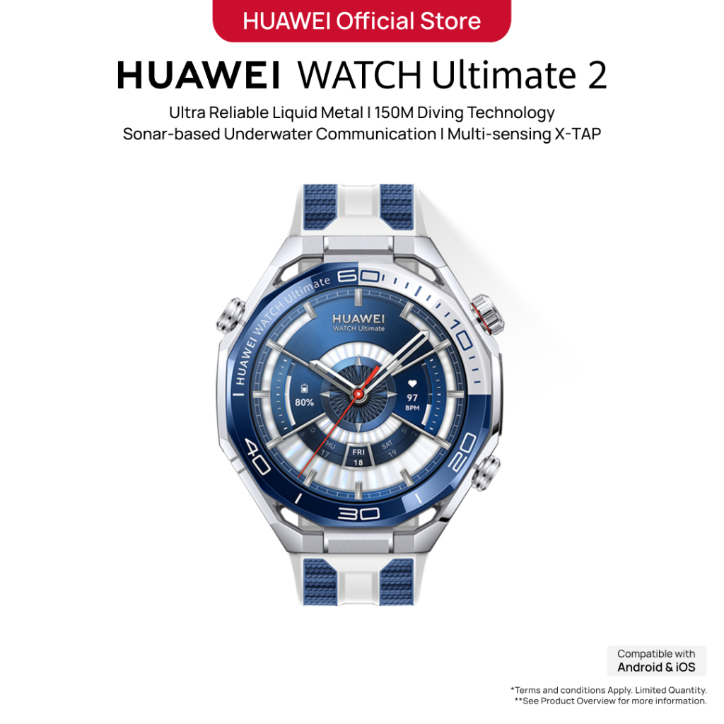 HUAWEI WATCH Ultimate 2 Smartwatch | Ultra Reliable Liquid Metal | 150M Diving | Sonar-based Underwater Communication