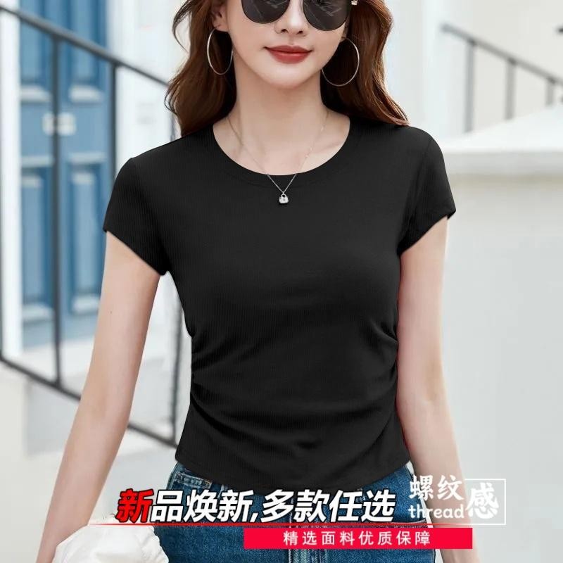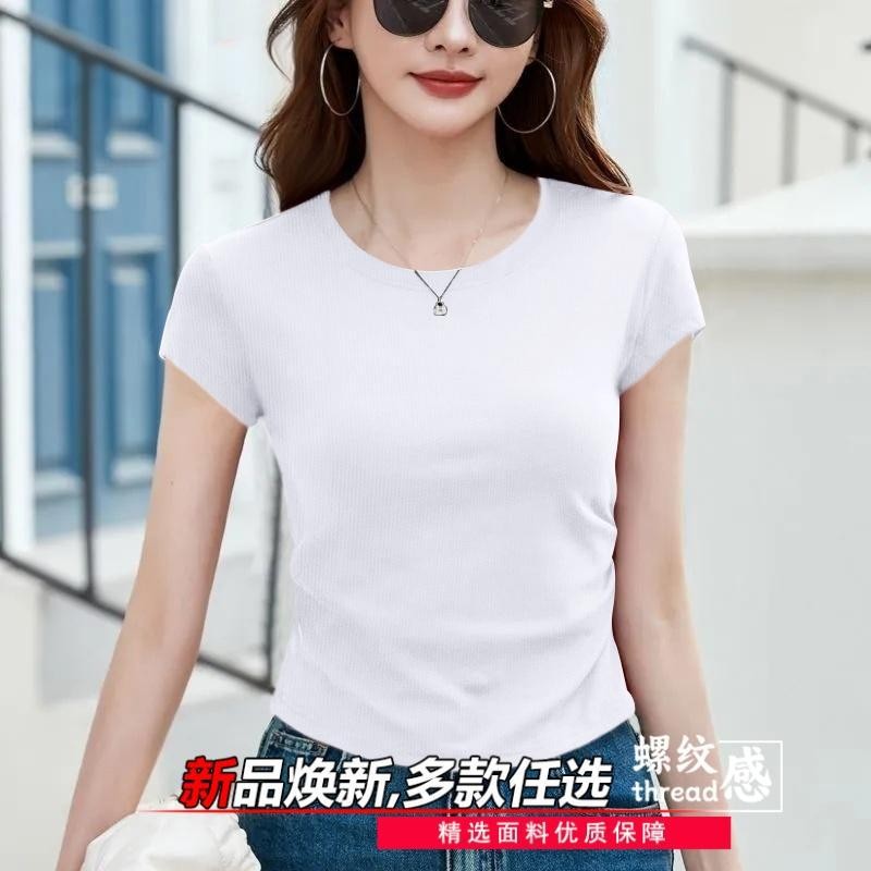 Ice Thread Women's T-Shirt - Simple Round Neck Summer Top 2026