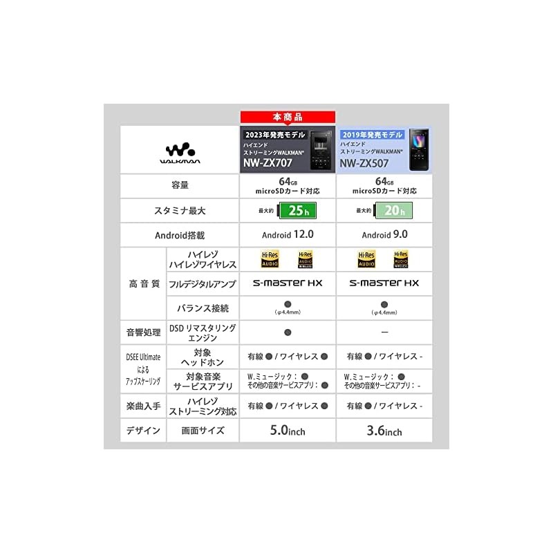 Sony Walkman 64GB ZX Series NW-ZX707 : High-end streaming WALKMAN / Equipped with DSD remastering engine / MP3 player / Bluetooth / android / Up to 25 hours continuous playback / microSD support / 5.0" touch panel / 4. 4mm balanced connection / USB DAC fu