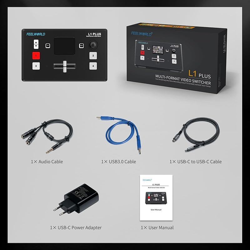 FEELWORLD L1 PLUS Multi-Camera Video Mixer Switcher with Pan-Tilt Controller, Chroma Key, 4 HDMI Inputs, USB 3.0 Output, 2-Inch Touch Screen for Real-Time Live Production