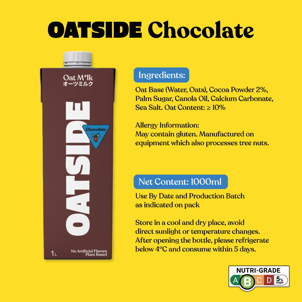 OATSIDE Chocolate Oat Milk 1L x 6 - Dairy Free, Rich, Made with Real Cacao